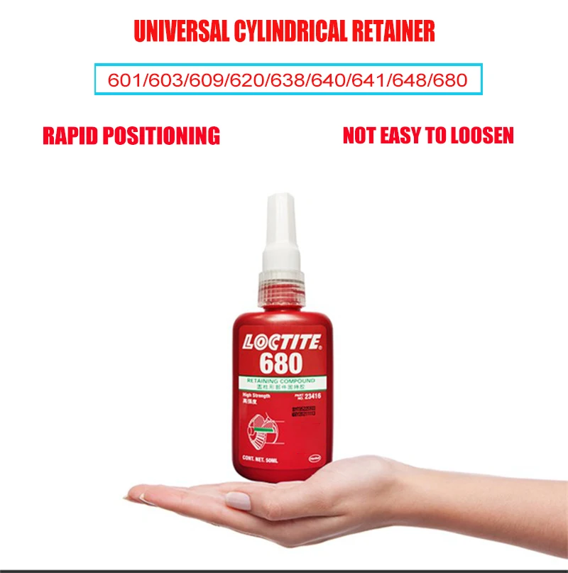 Средняя вязкость, подходит для зазора, помех fit, Gute корпус, шкив, шестерня, ротор, ремонтная машина, вал фитинга, из допуска частей. Используется для хранения цилиндрических деталей с зазором 0,38 мм или меньше. Эффект склеивания подшипников с скользящей посадкой особенно выдающийся. Он используется для случаев, которые должны быть постоянно зафиксированы без разборки.