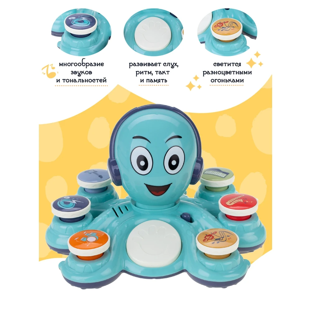 В комплекте: 1 Музыкальный Осьминог и 6 блоков с музыкальными инструментами.