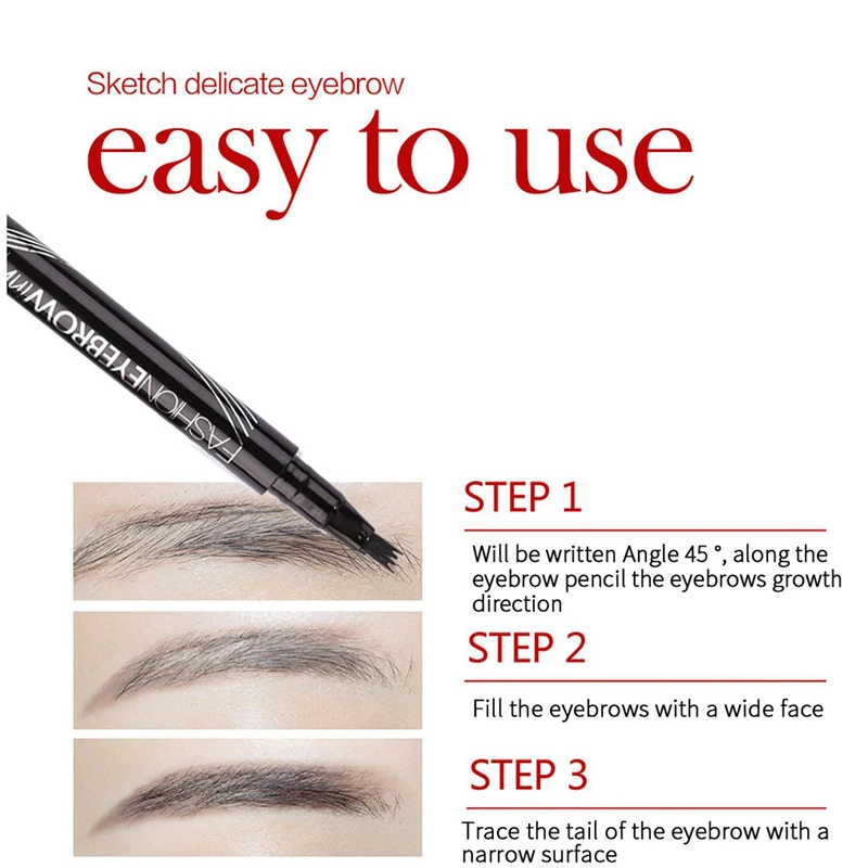 4 цвета, ручка для бровей, водонепроницаемая, 4 вилки, наконечник для бровей, карандаш для татуировки, косметический, долговечный, натуральный, темно-коричневый, жидкий карандаш для бровей