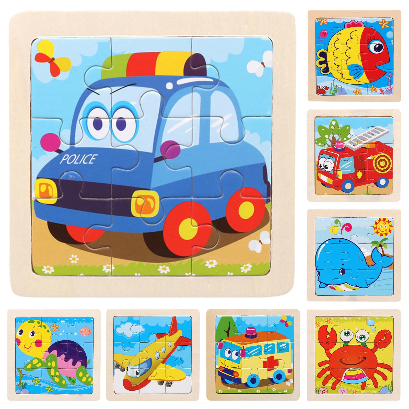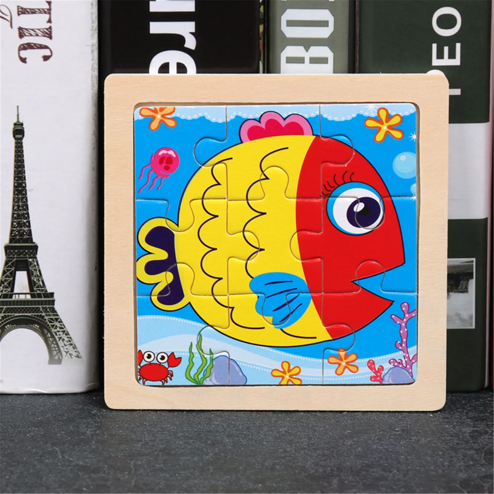 Деревянные 9 шт Пазлы детские Морские животные трафик мультфильм самолет головоломка детское раннее образование и интеллектуальные строительные блоки игрушки