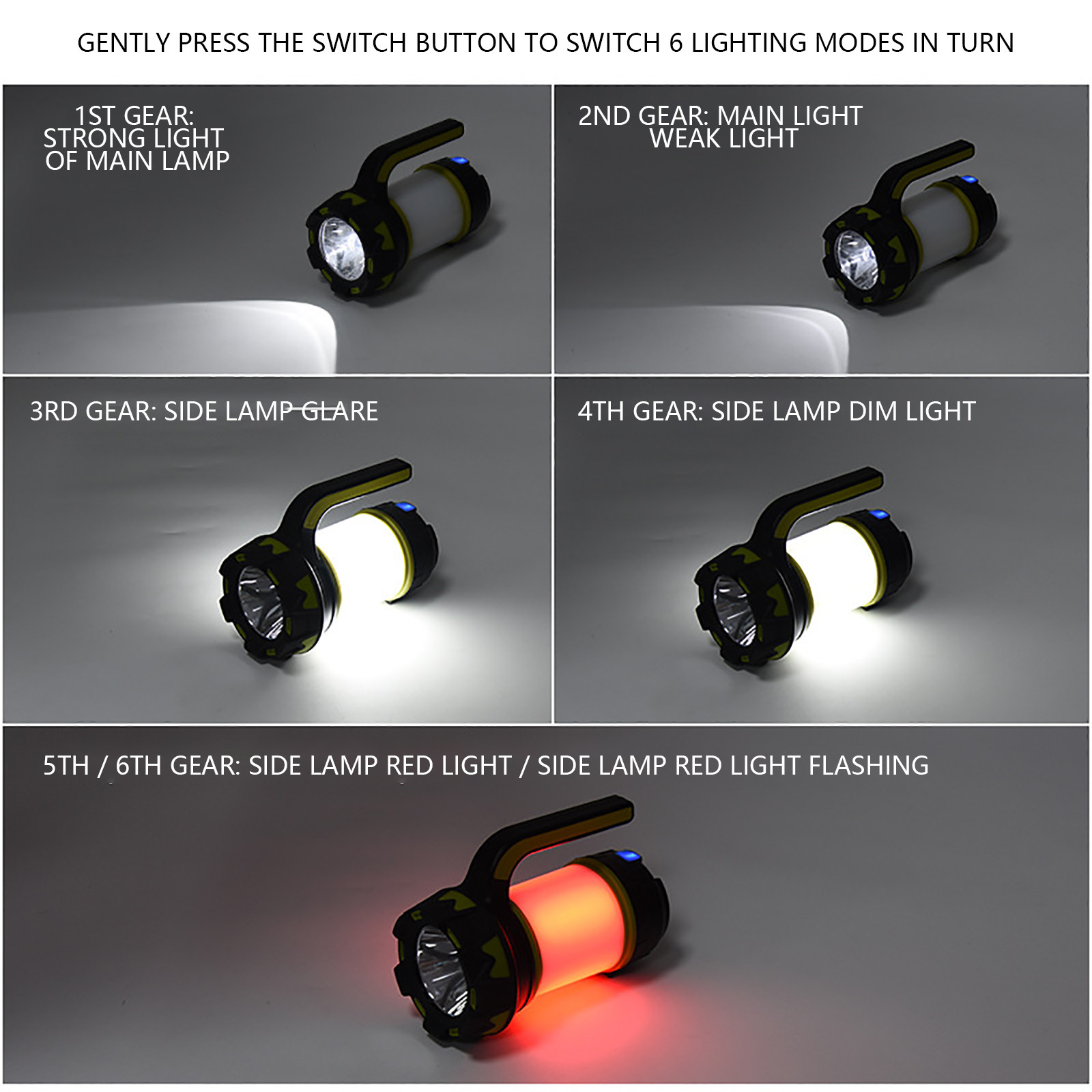 Сильный светильник, портативный поисковый светильник, светодиодный перезаряжаемый аварийный светильник для кемпинга, боковой светильник, фонарь, вспышка, светильник