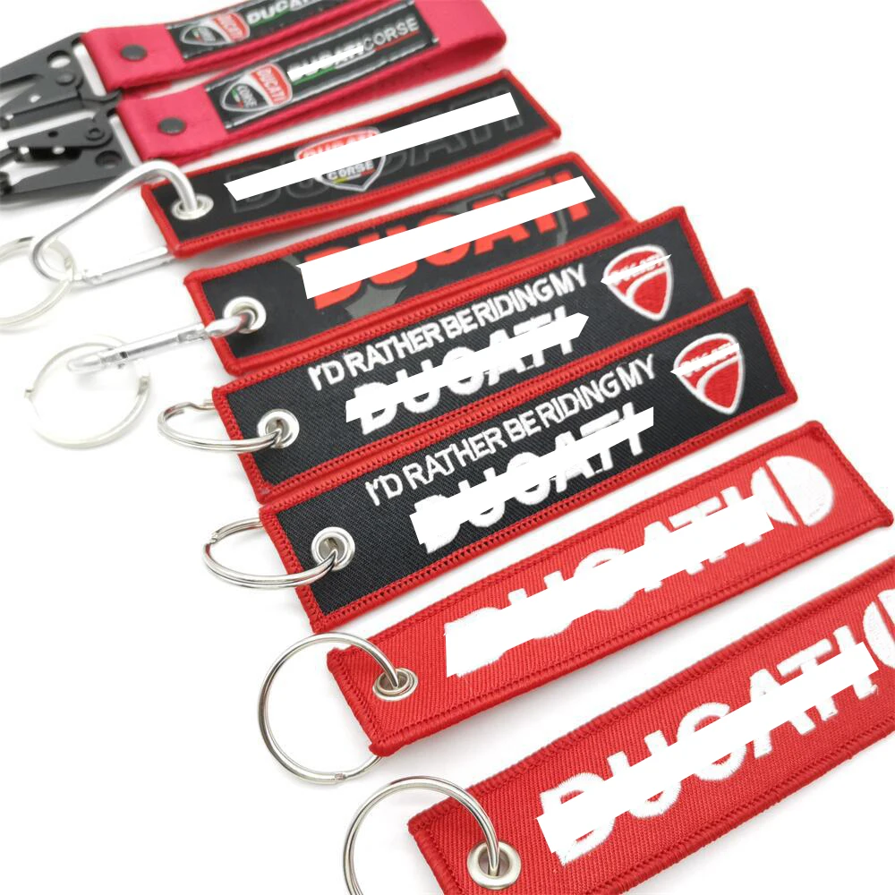 Motorcycle Polyester Embroidery Keyring Keychain Pendant Key Ring Travel Bag Hanging Buckle Key Chain Logo For Ducati Series