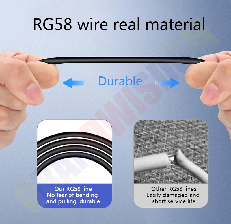 4. RG58 провод настоящий материал высокой плотности Плетеный защитный слой без содержания кислорода Чистый медный провод сердечник эластичный ПВХ внешняя крышка защита от помех быстрая и стабильная передача прочность и сопротивление растяжению более прочные