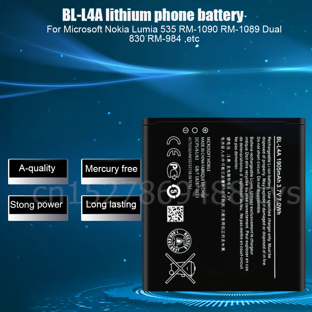 1PCS 1905mAh BL-L4A BLL4A BL L4A Replacement Phone Battery For Microsoft Nokia Lumia 535 RM-1090 RM-1089 Dual 830 RM-984 BV-L4A