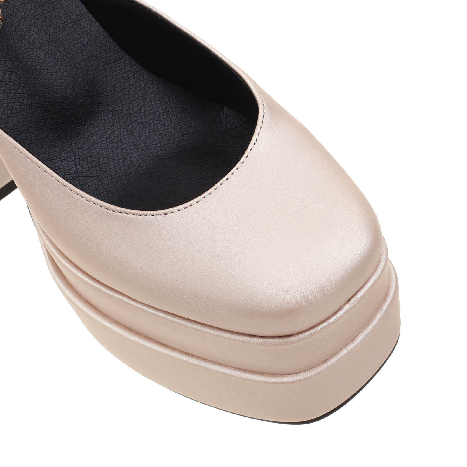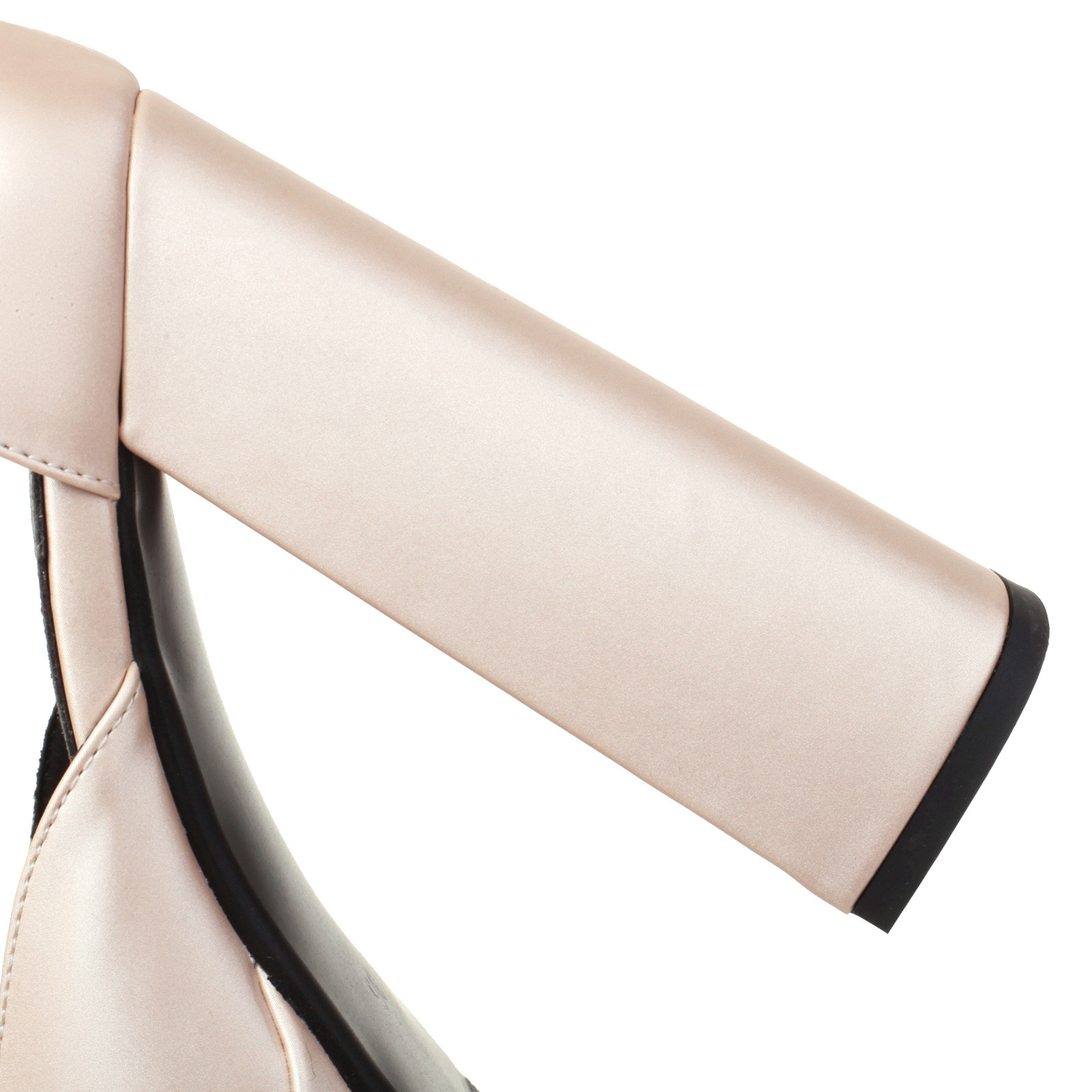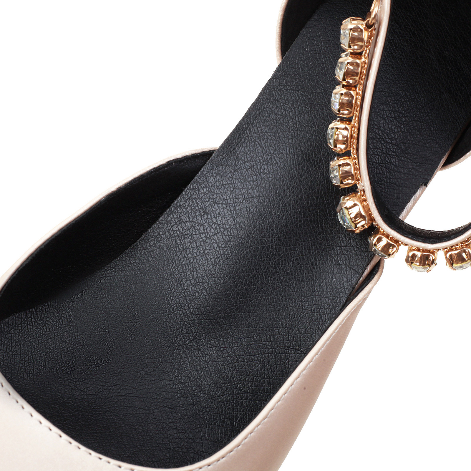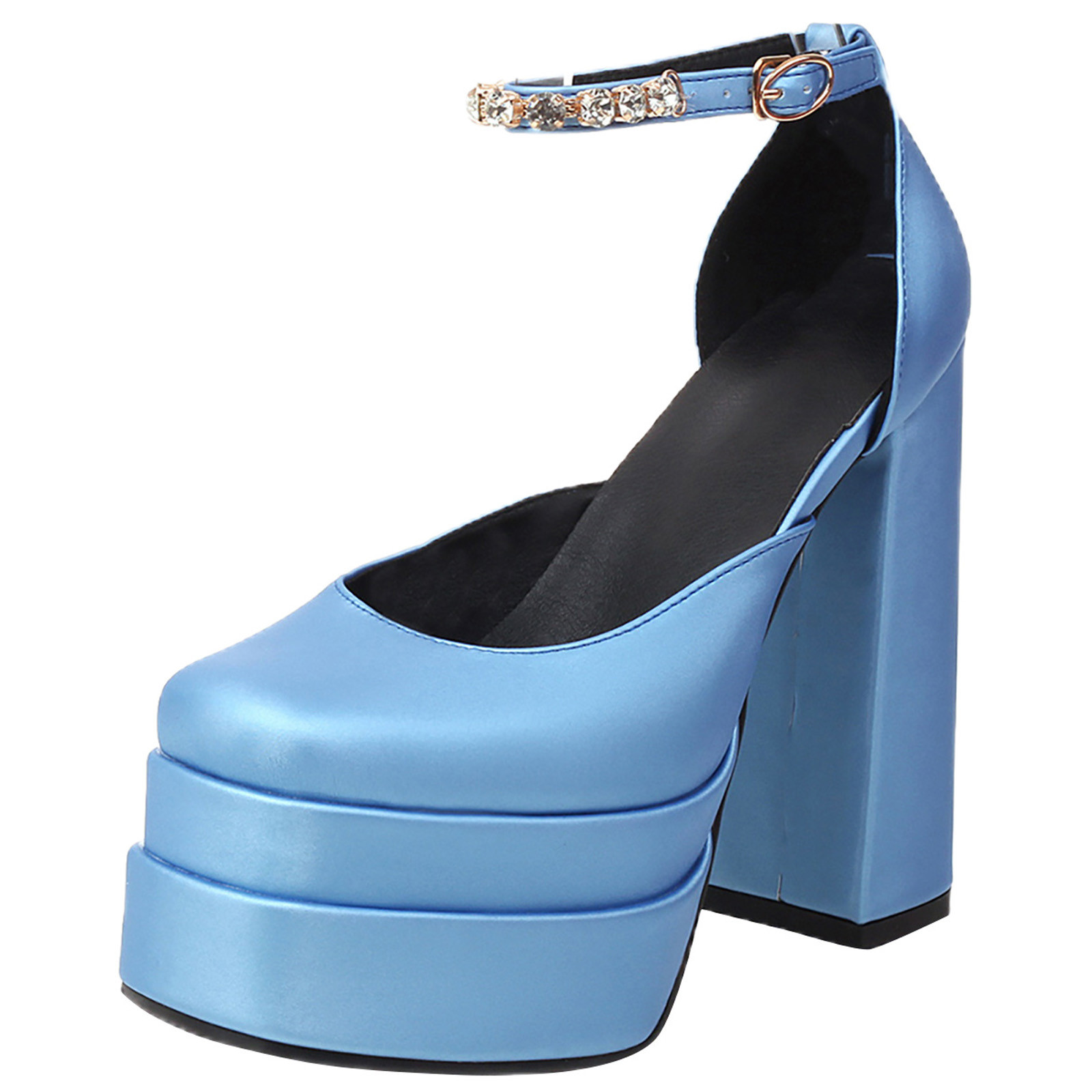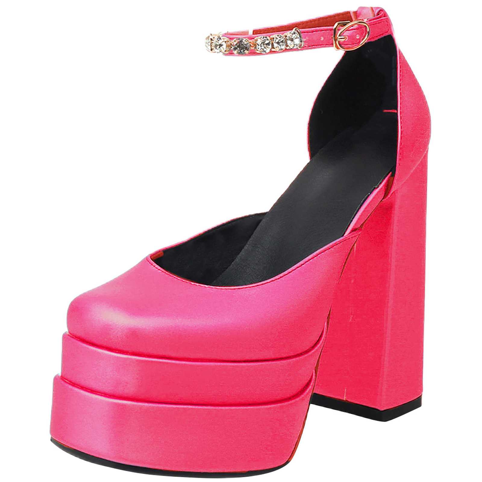 3. Дизайн с квадратным носком и очень высокий массивный каблук создают идеальное модное сочетание. Яркие цвета и узоры из страз на носке обуви придают общий блеск, Что определенно привлекает внимание.