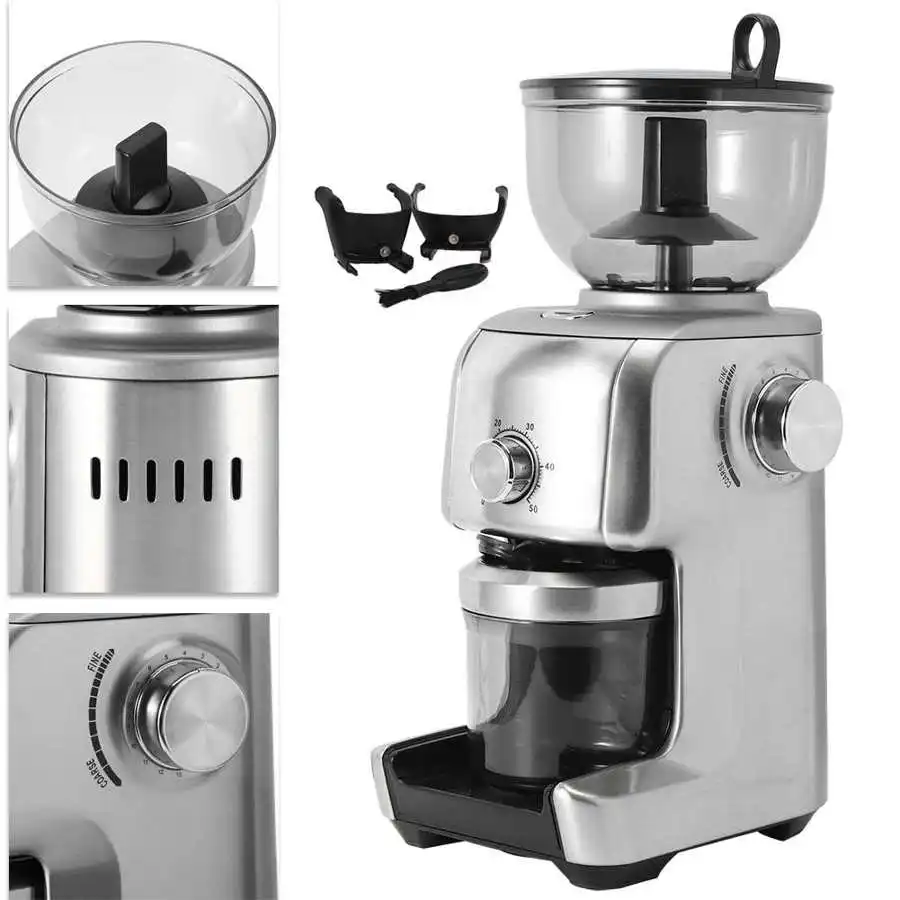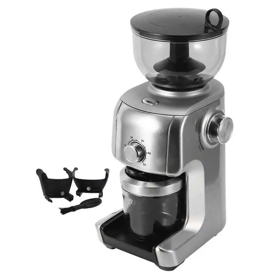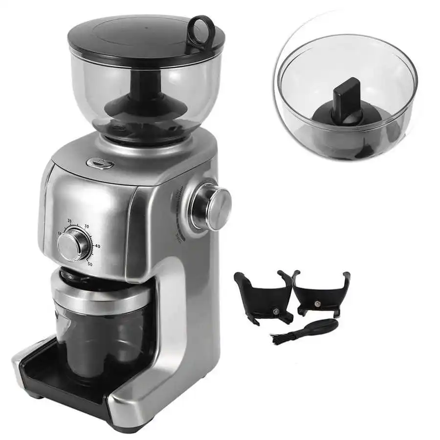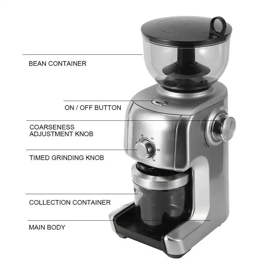 1. El molinillo de café utiliza una lima de acero cónica para aplastar los granos de café en lugar de cortarlos en rodajas finas con cuchillas tradicionales. Este diseño de corte avanzado comprociona resultados de molienda precisos y consistentes y un sabor mejorado.