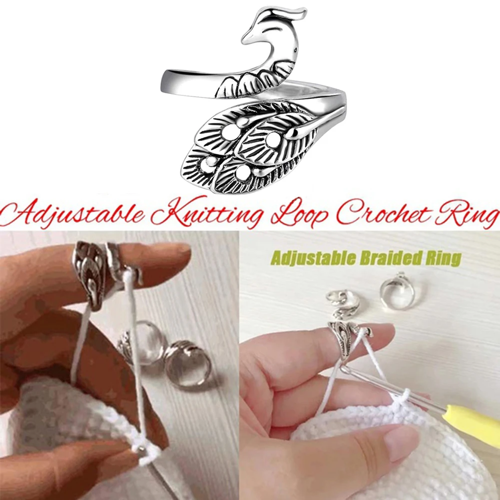 Винтажное кольцо из сплава, Открытое кольцо из павлина, Женские Ювелирные изделия, трикотажное кольцо, регулируемое ношение пальцев, наперсток, пряжа, вязание крючком, петля, домашнее вязание, ремесла с коробкой