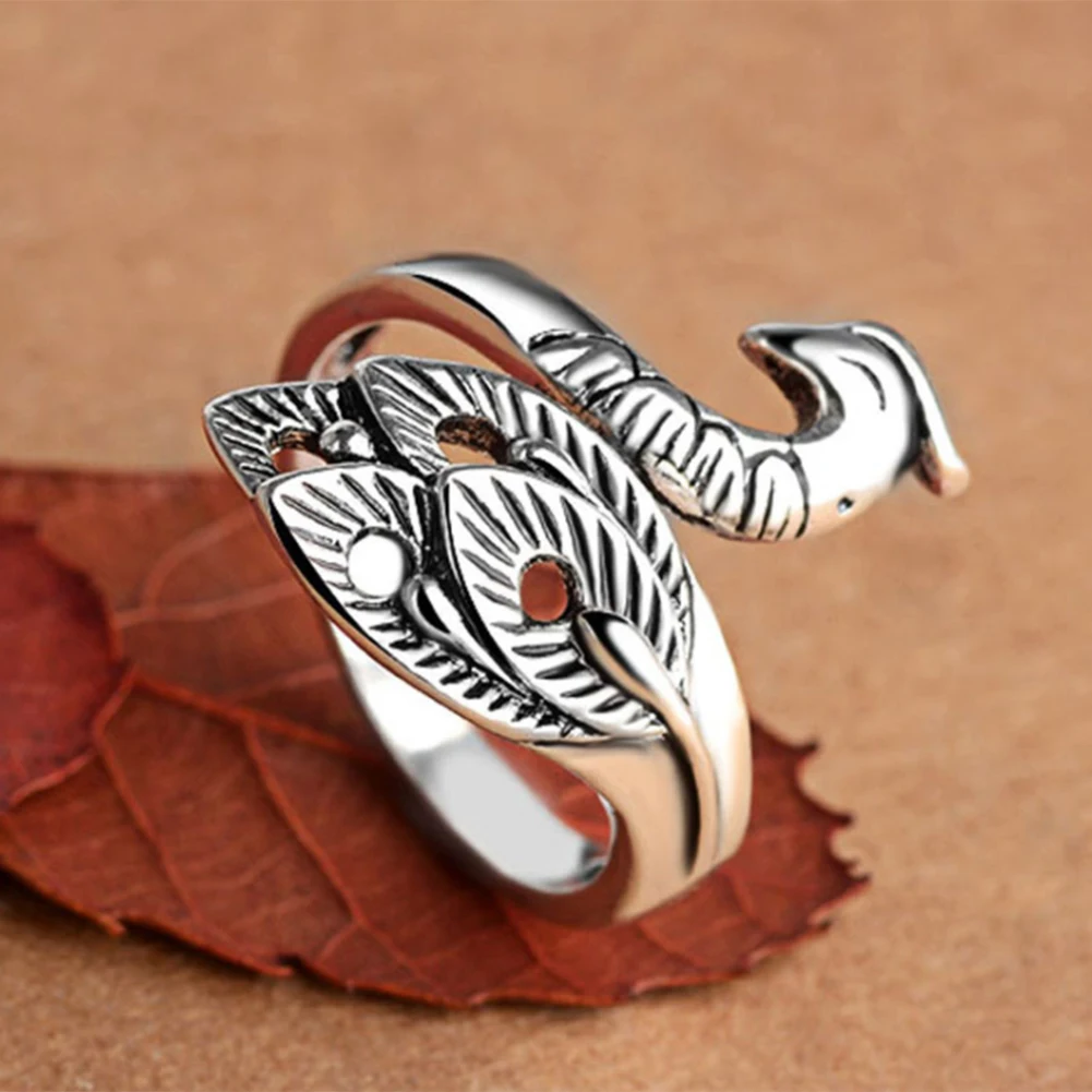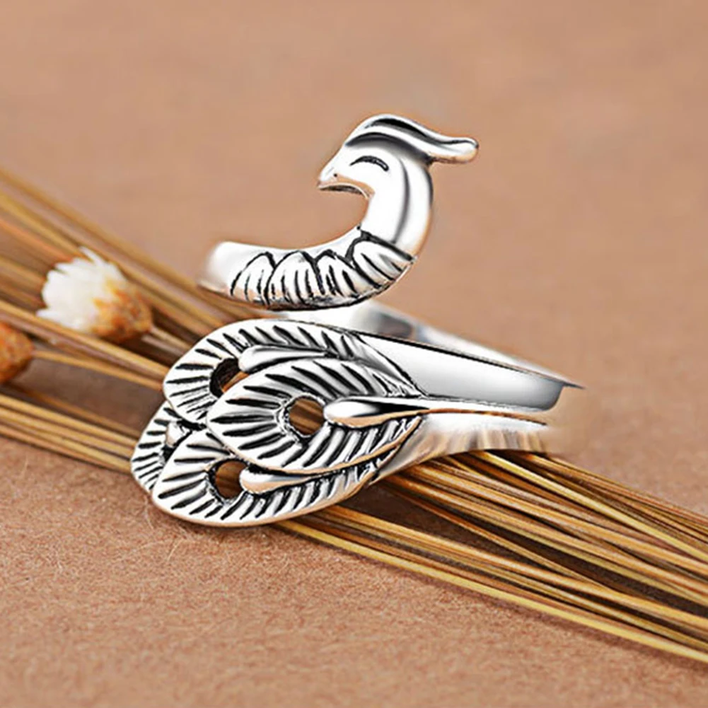 Название: ретро 3D посеребренное кольцо в виде павлина, женское ювелирное изделие, крючок, пряжа