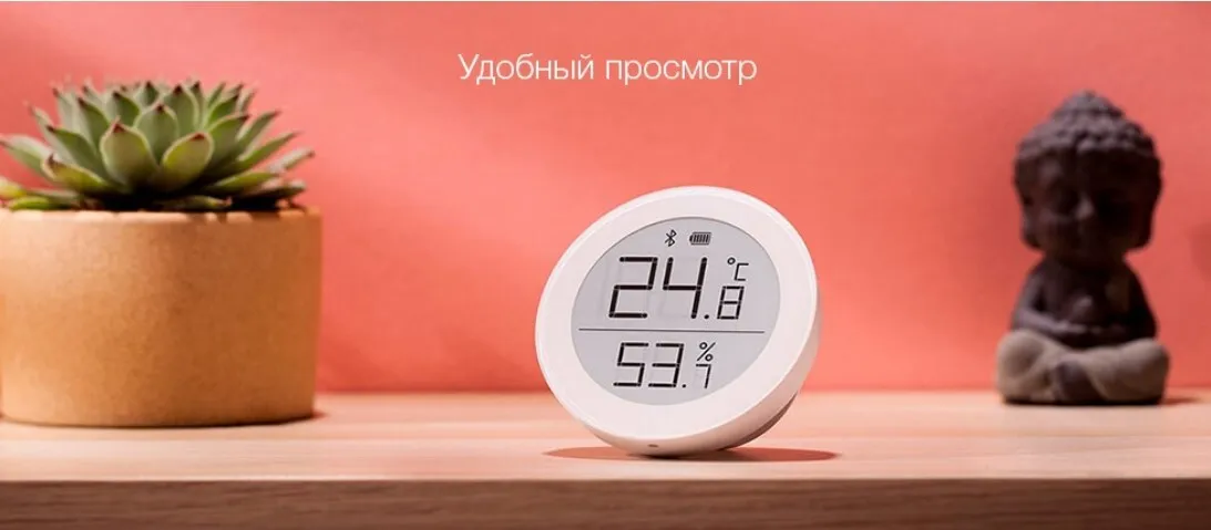Четкие “чернила” на белом фоне Дисплей с электронными чернилами прекрасно отображает информацию вне зависимости от условий окружающего освещения. Текст на нем выглядит как напечатанный на бумаге, и его так же легко считывать с любого угла. Сохранение данных за 30 дней Датчик ClearGrass каждые 15 минут сохраняет данные о температуре и влажности, позволяя посмотреть показатели за последние 30 дней. Магнитное крепление прямо на стену В корпус датчика ClearGrass встроен магнит для удобной установки на металлические поверхности. Благодаря гибкой системе крепления, датчик можно разместить на стенах не только в любом удобном месте, но и под любым углом, и так же быстро снять. Корпус толщиной всего 14 мм Датчик температуры и влажности ClearGrass питается от батарейки CR2430, а его начинка умещается в корпусе толщиной всего 14 мм. Благодаря низкому энергопотреблению дисплеев с электронными чернилами, одной батарейки хватит на 8-12 месяцев работы в комнатных условиях. Тип: Датчик температуры и влажности Версия Bluetooth: 5.0 Высокая точность Рабочая температура: - 9,9 - 50 °C Рабочая влажность: 0 - 99% RH Высокая точность Возможно включение в систему умного дома Управление через приложение Батарея: CR2430 Размер: 60,5 х 60,5 х 13,7 мм Вес датчика: 38 г