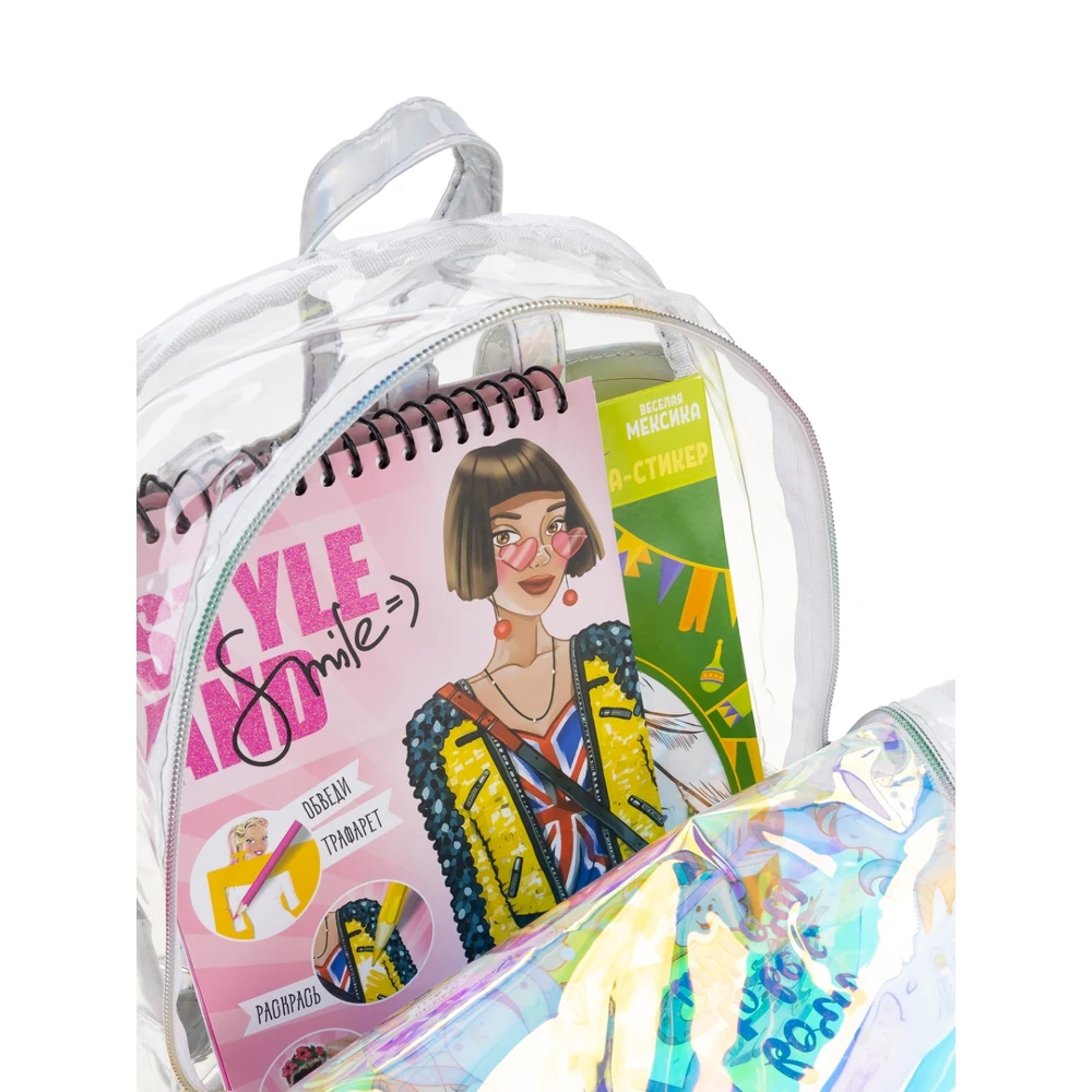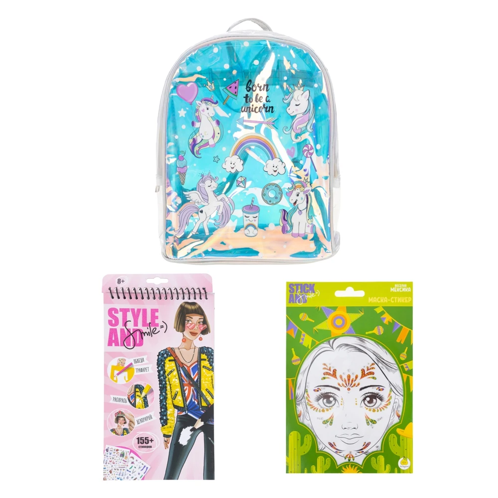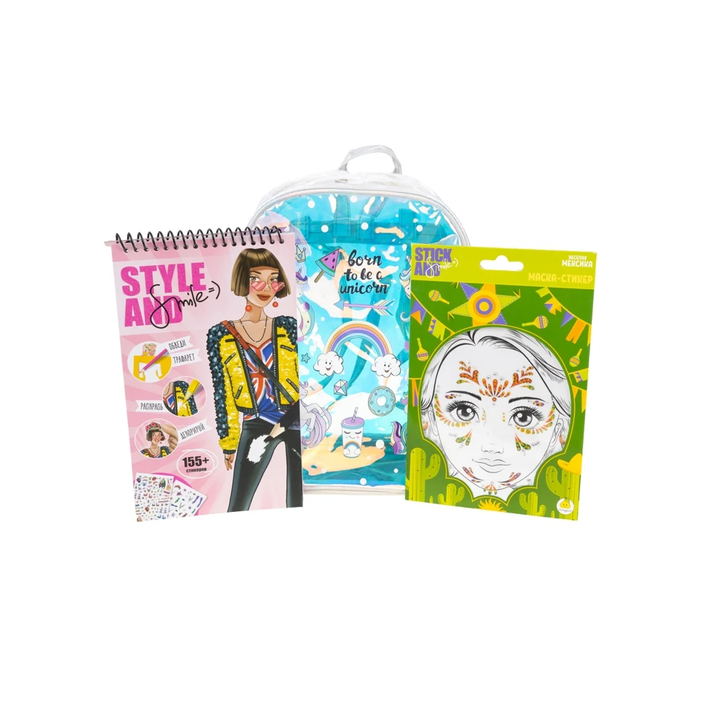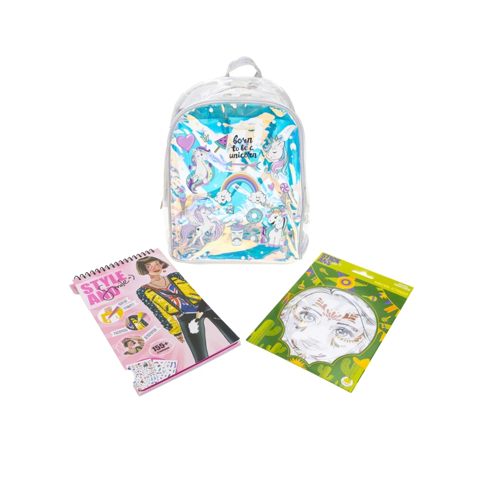 Творческий набор для девочек прекрасно подойдет в качестве подарка вашему ребенку на любой праздник. Набор для девочек состоит из следующих элементов: модного, прозрачного водонепроницаемого рюкзака с регулируемыми лямками, маски - стикеры для лица, блокнот дизайнерский Style and smile с раскрасками. Если ваш ребенок любит перевоплощаться в различных сказочных персонажей, то этот набор для творчества точно понравится. С разнообразными масками - стикерами ребенку станет просто менять свой образ каждый день. В блокнот дизайнера "Английский вояж" входит 115 наклеек, 35 трафаретов и 24 листа раскраски. С помощью блокнота для девочек ваш ребенок сможет погрузиться в увлекательный и интересный творческий процесс, показать свои художественные навыки и почувствует себя настоящим стилистом или дизайнером. С набором для девочек ваша модница сможет реализовать себя в качестве художника, развить воображение и чувство стиля.