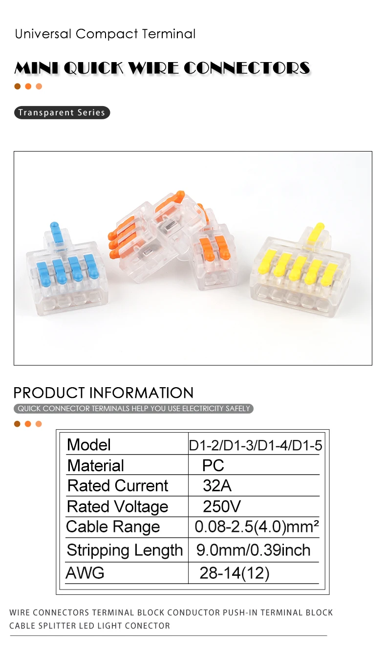 Мини Универсальный компактный проводник пружинный соединяющий провод Соединитель с винтовым крепежным отверстием 1 в многократном пусковом блоке