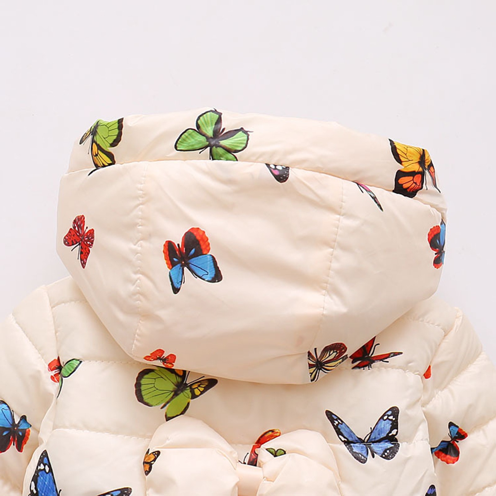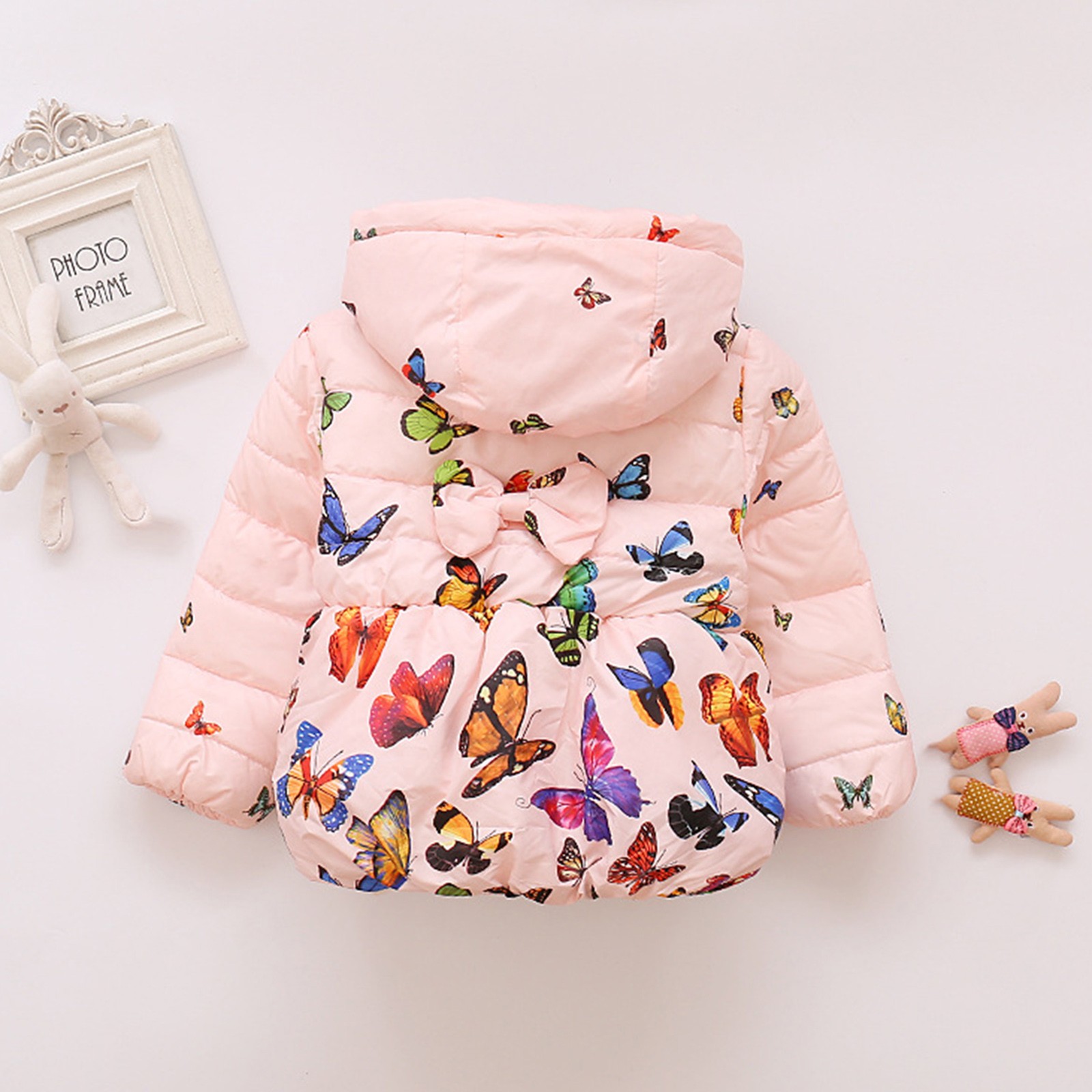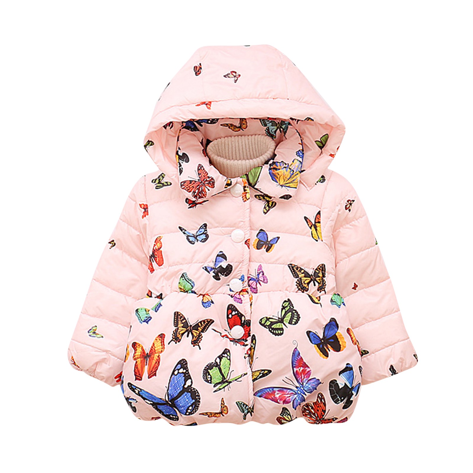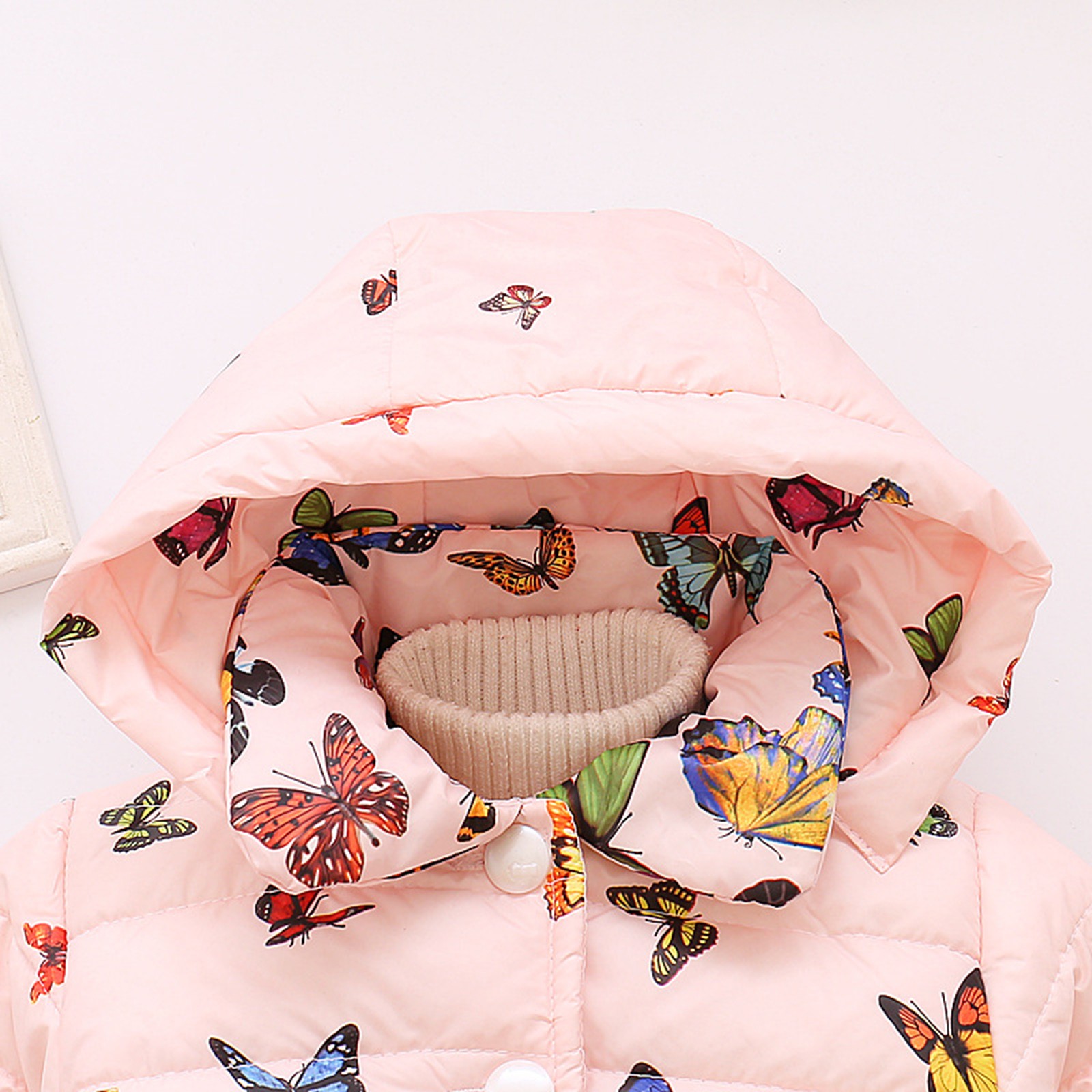 Зимняя утепленная куртка с капюшоном и принтом бабочки для маленьких девочек