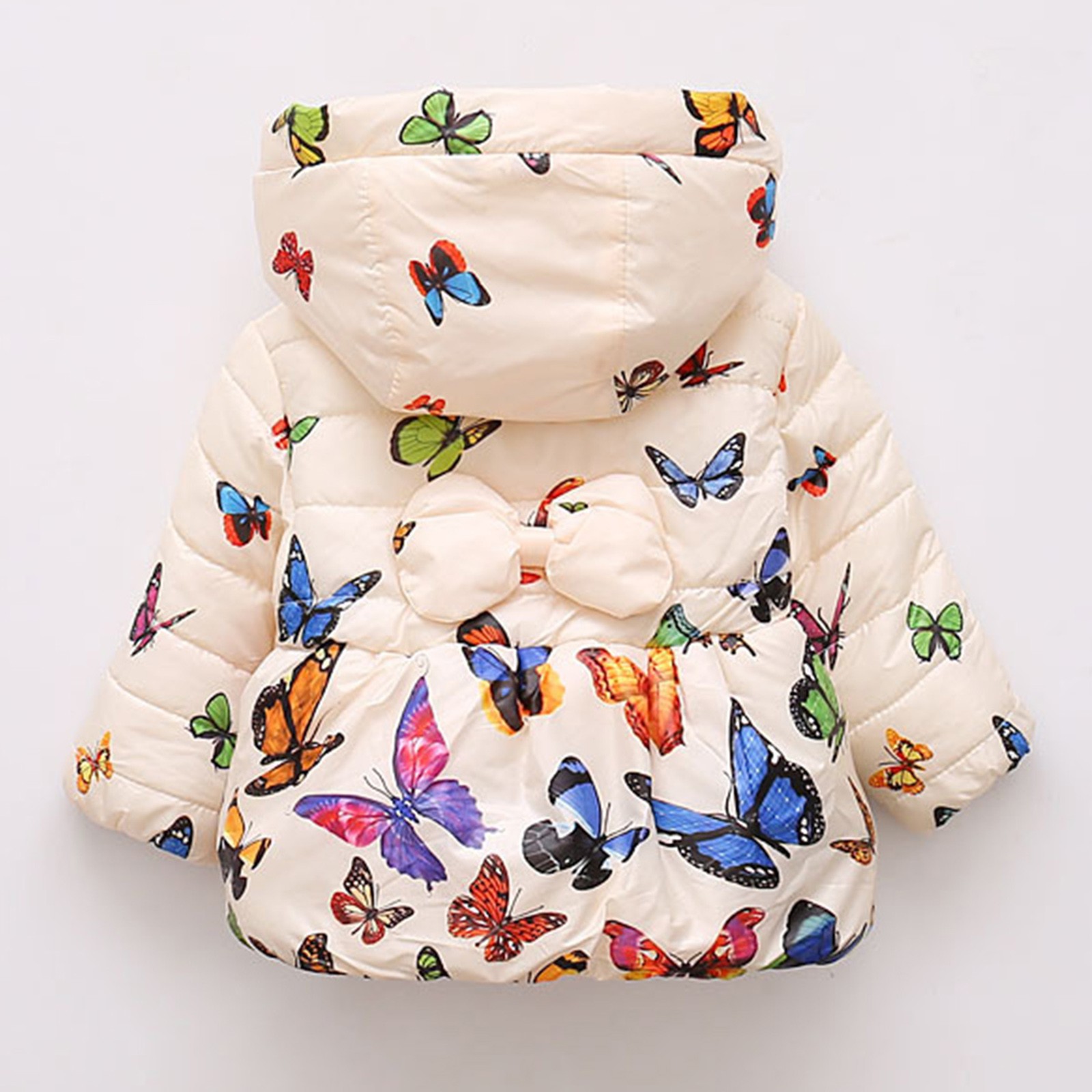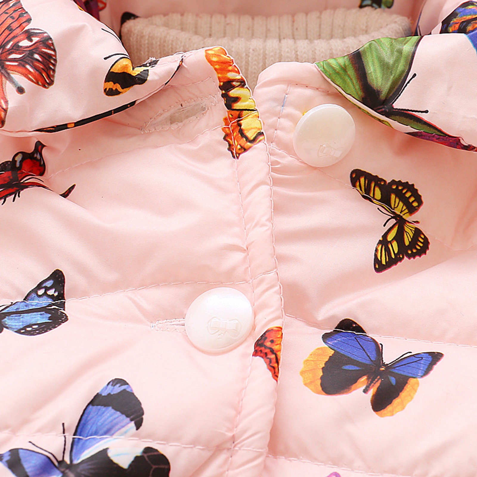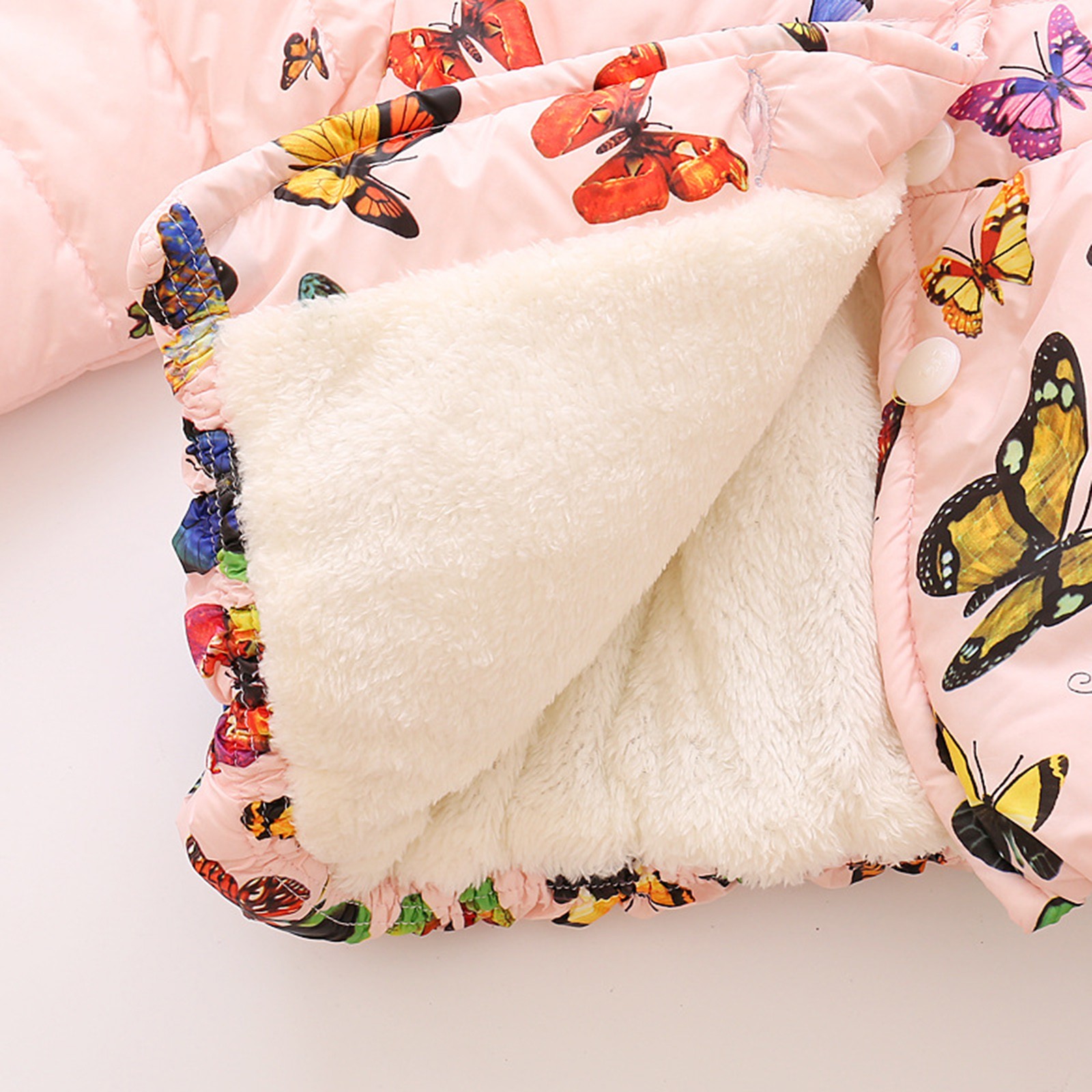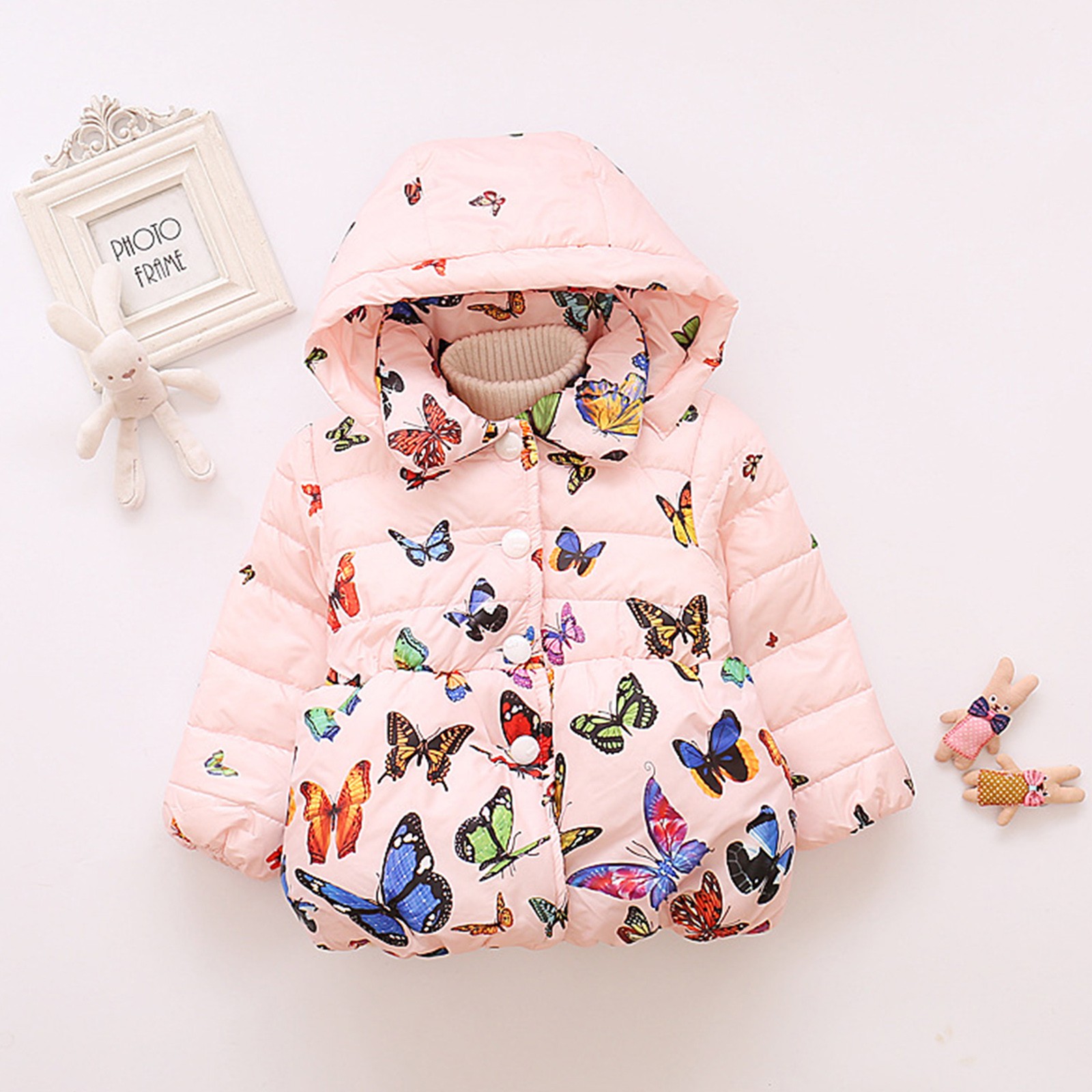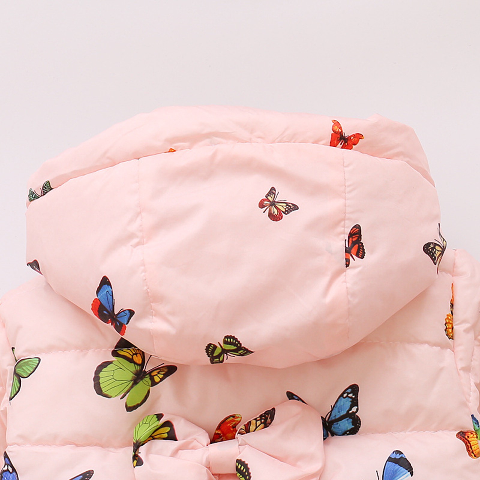 Зимняя утепленная куртка с капюшоном и принтом бабочки для маленьких девочек
