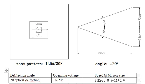 УСкорость сканера:>25Kpps(ILDA testpattern ,± 20 ° оптический)