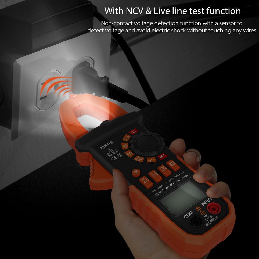 С NCV & LIVE LINE функция тестирования: Бесконтактная функция обнаружения напряжения с датчиком для обнаружения напряжения и избегания электрического удара, не касаясь каких-либо проводов.