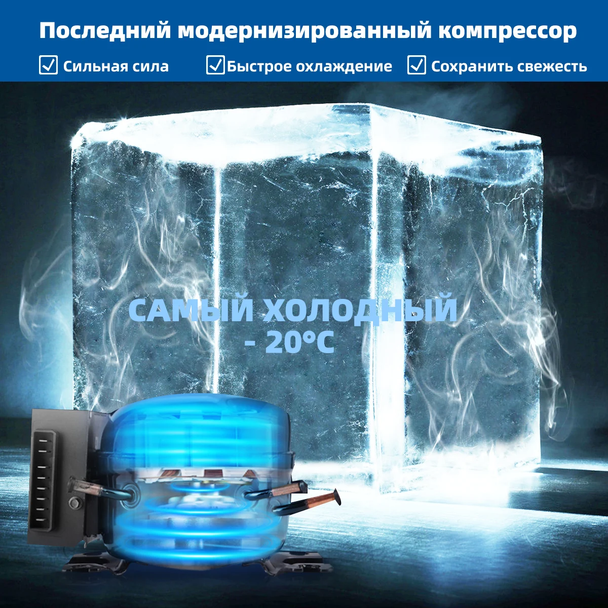 -Компрессор холодильника изготовлен из экологически чистого материала ABS + PP, который не загрязняет окружающую среду, низкий уровень шума, длительный срок службы, низкое энергопотребление и хорошая стабильность.