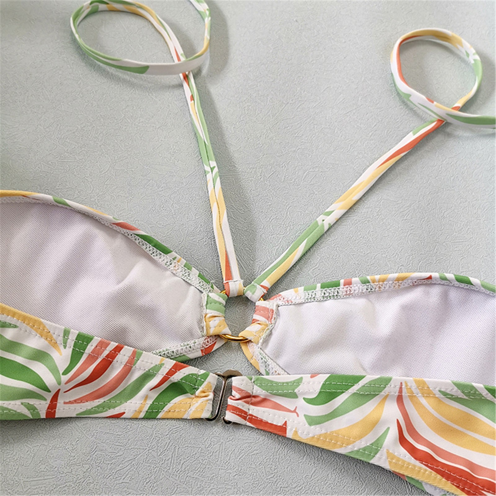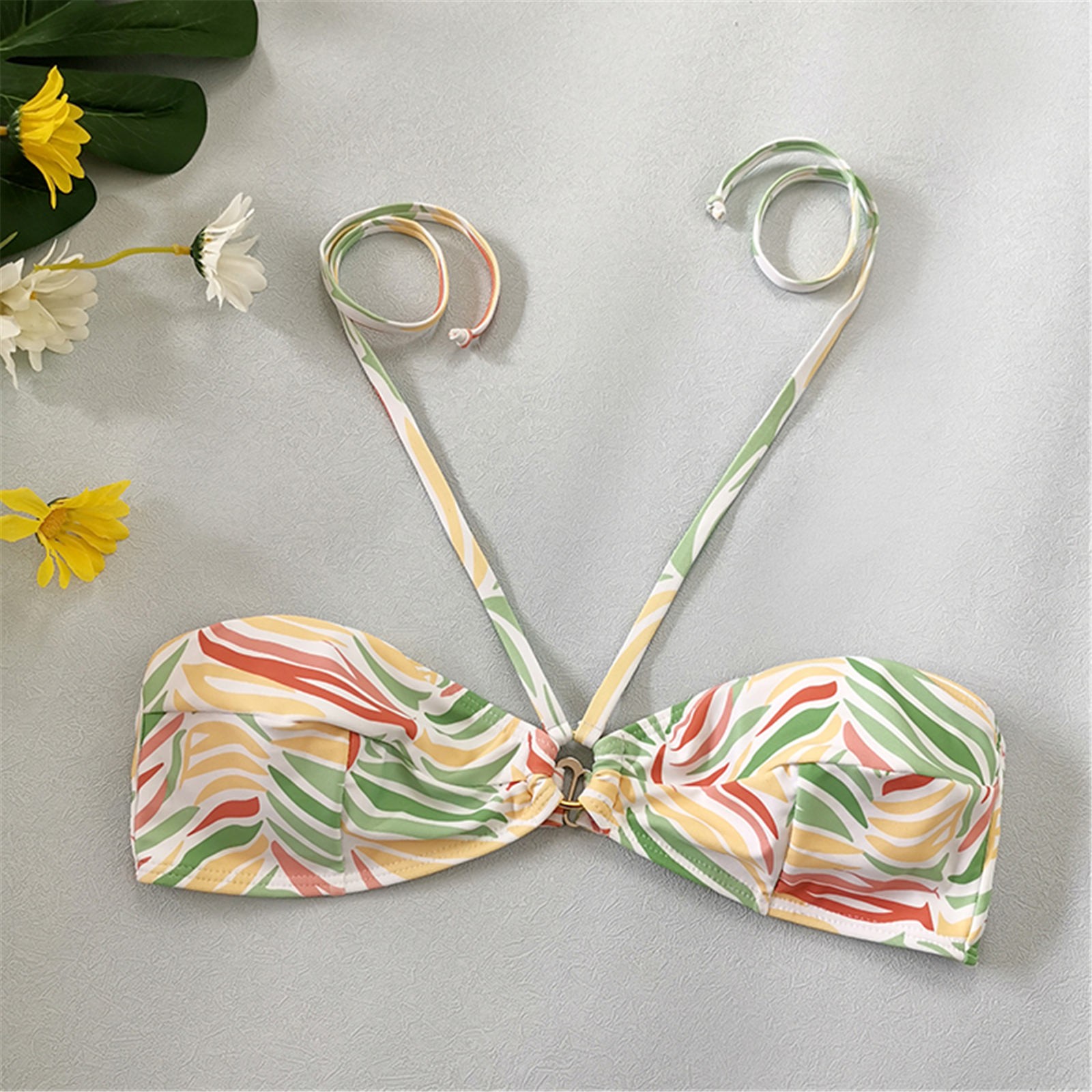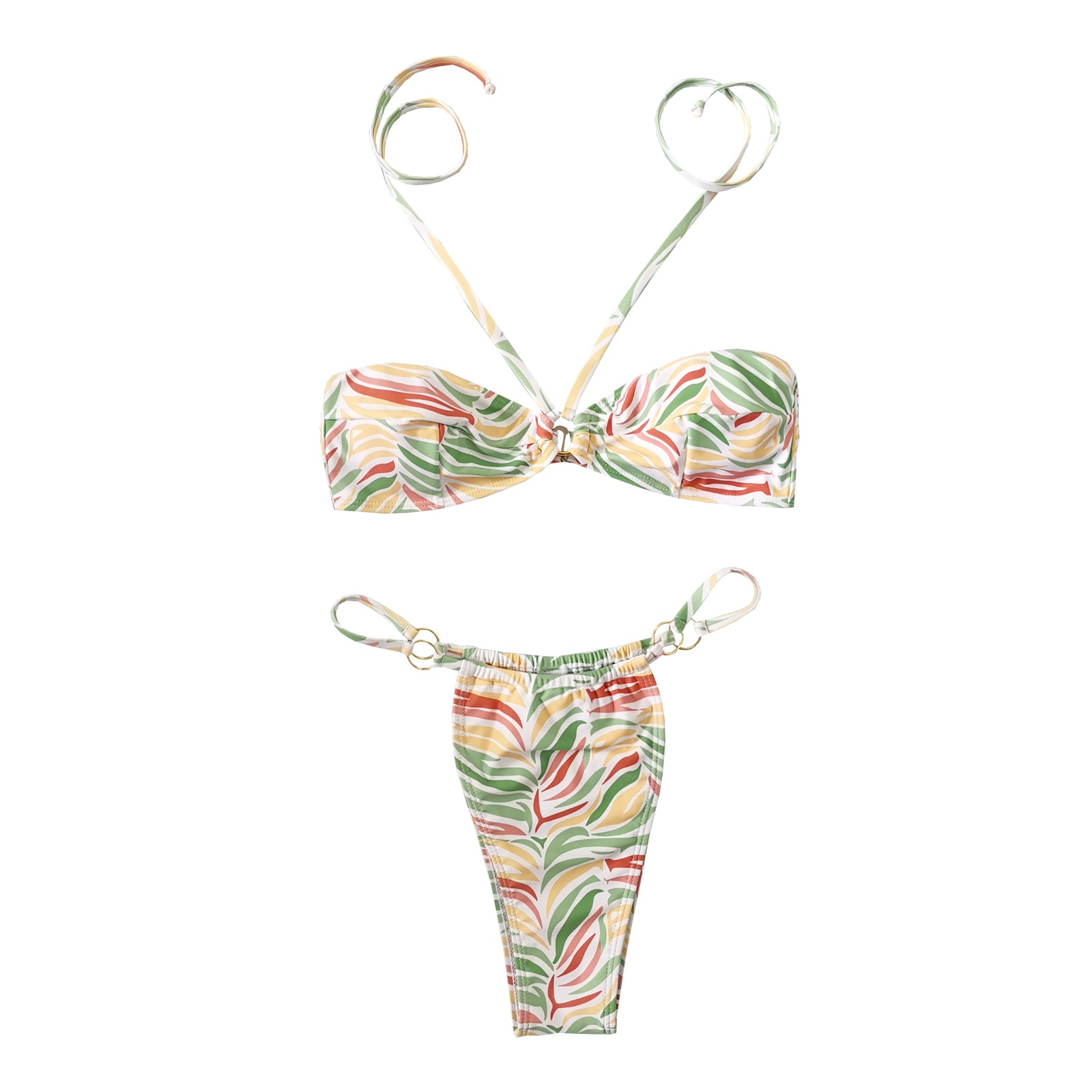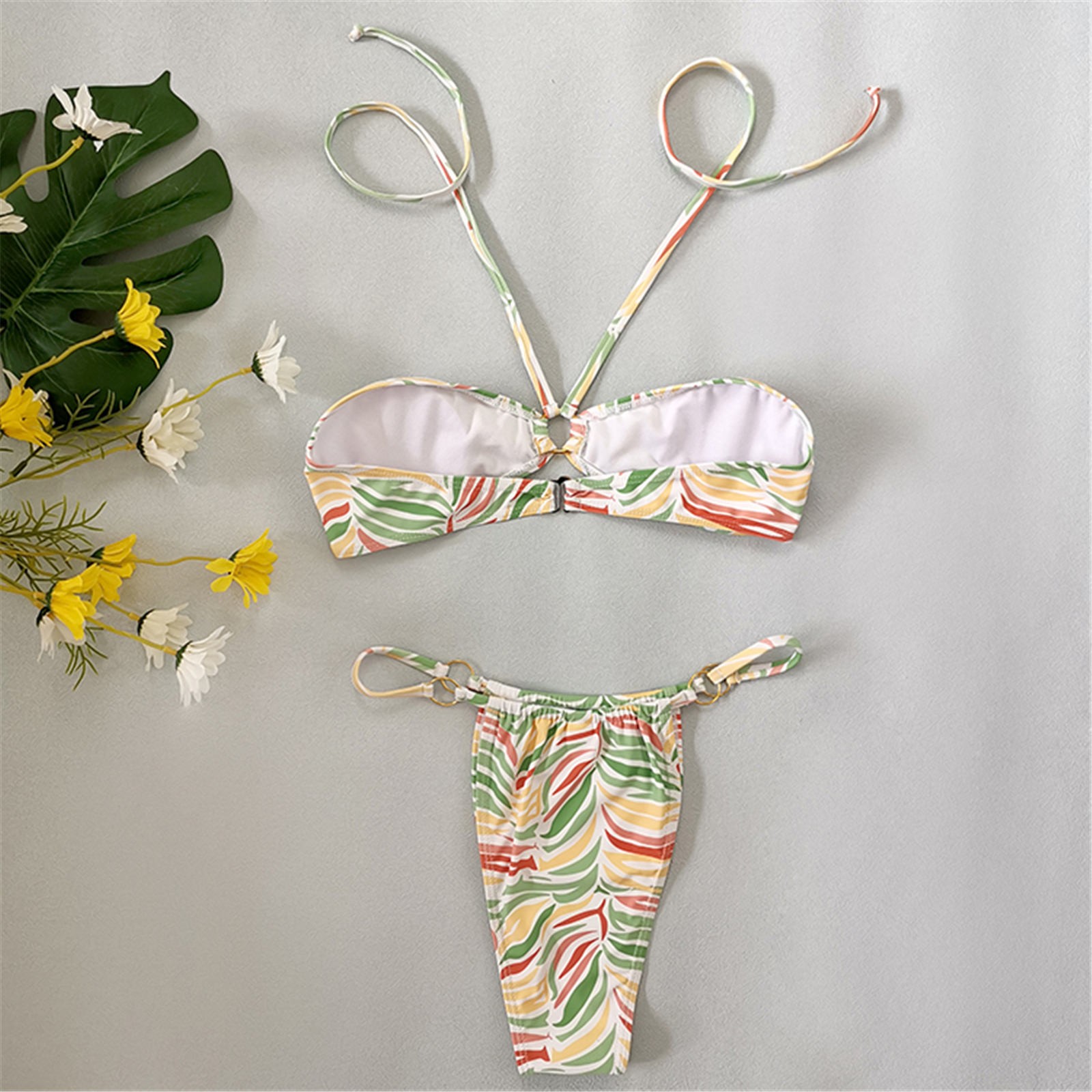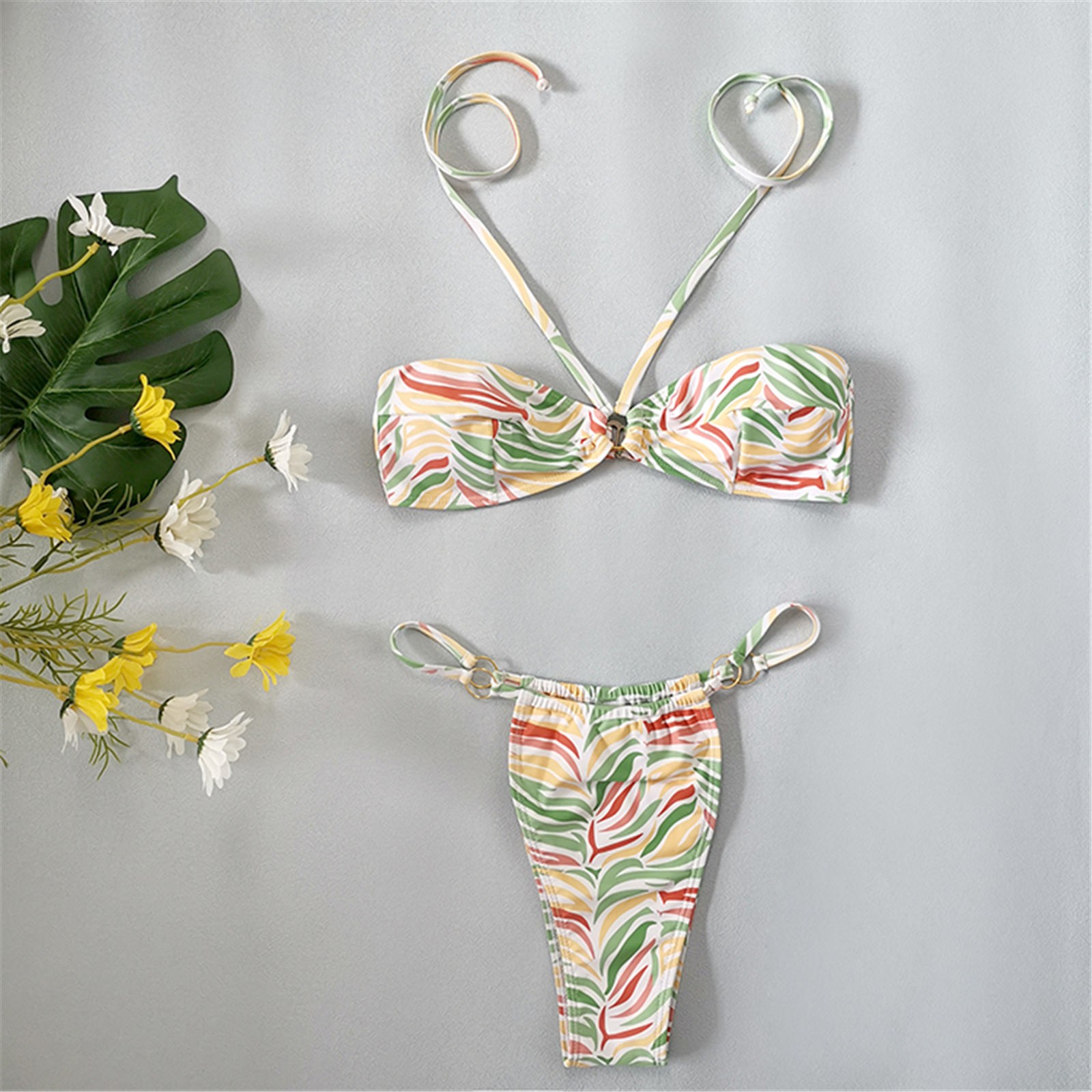 Женский модный купальник с принтом в виде листьев, сексуальный пляжный купальник-бикини с подвеской на шее