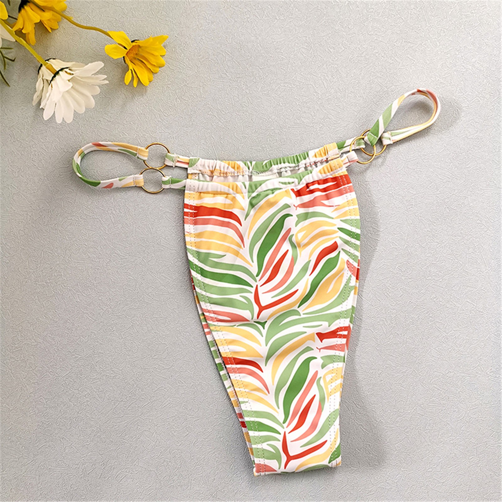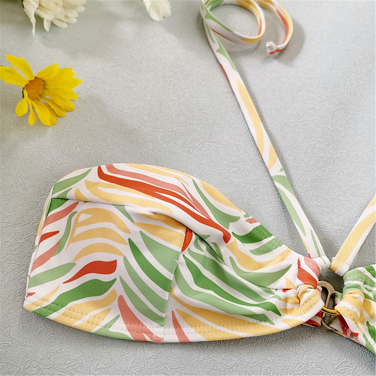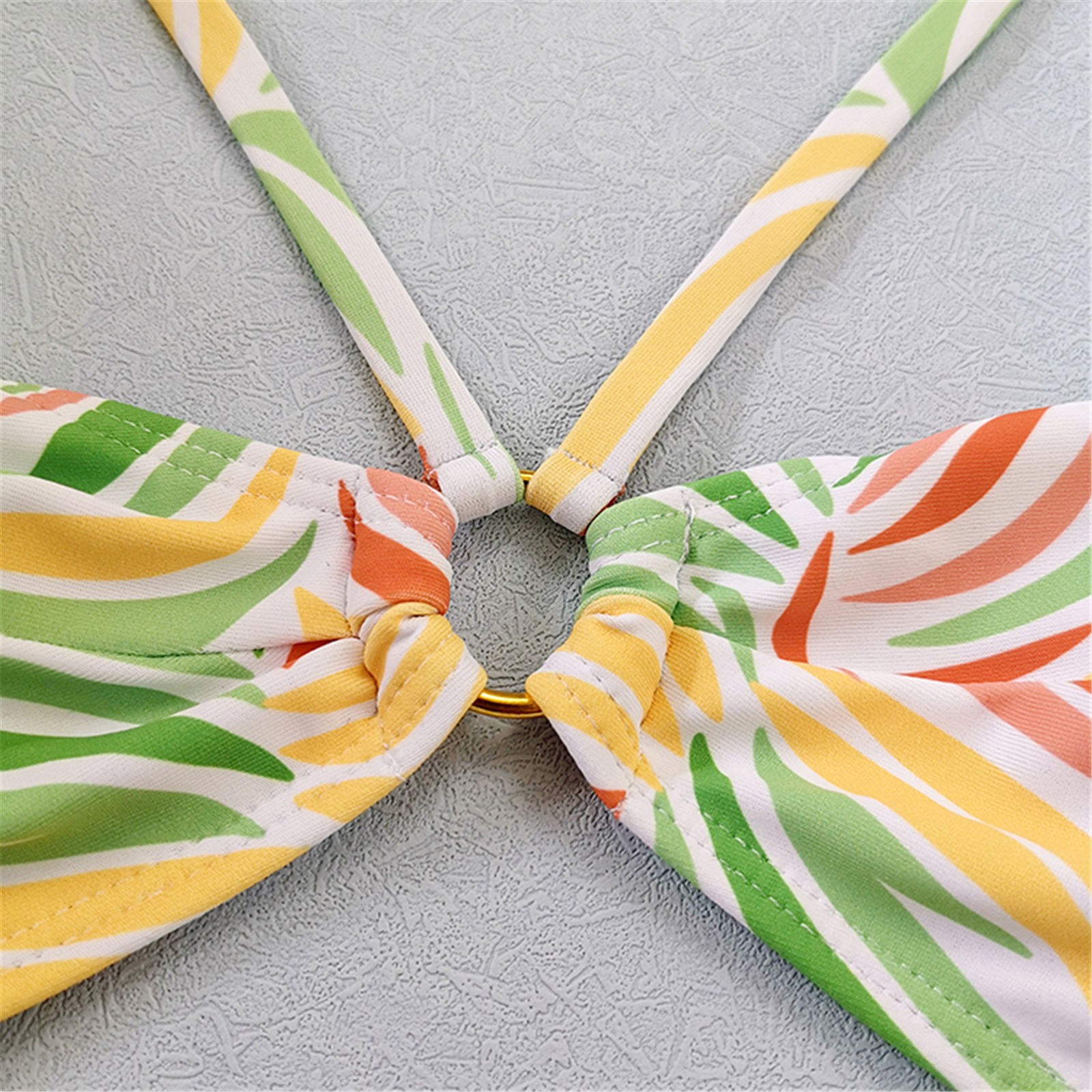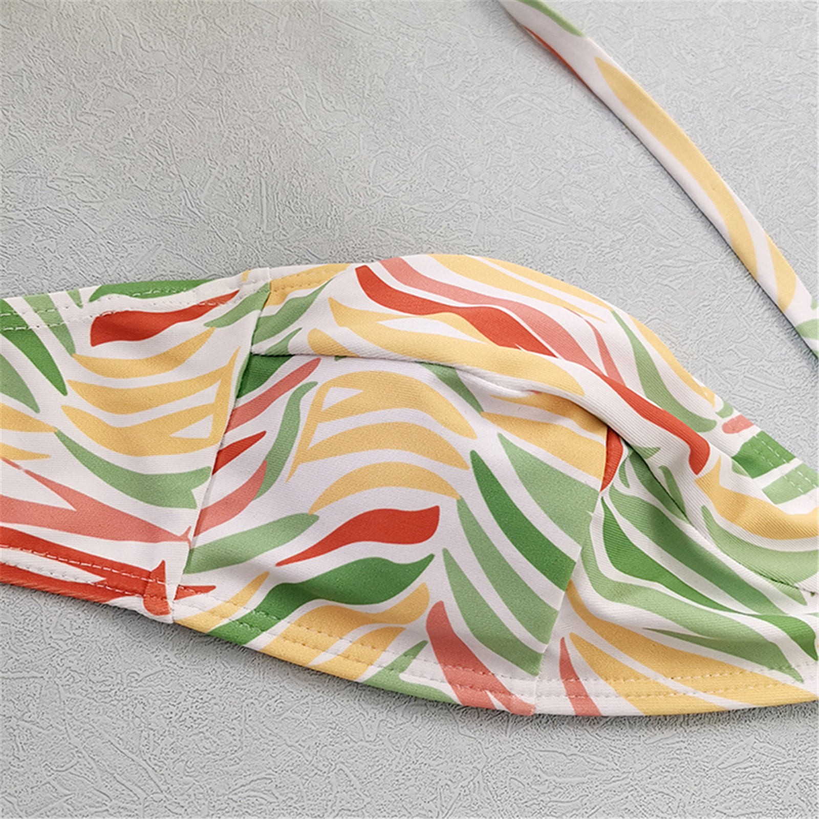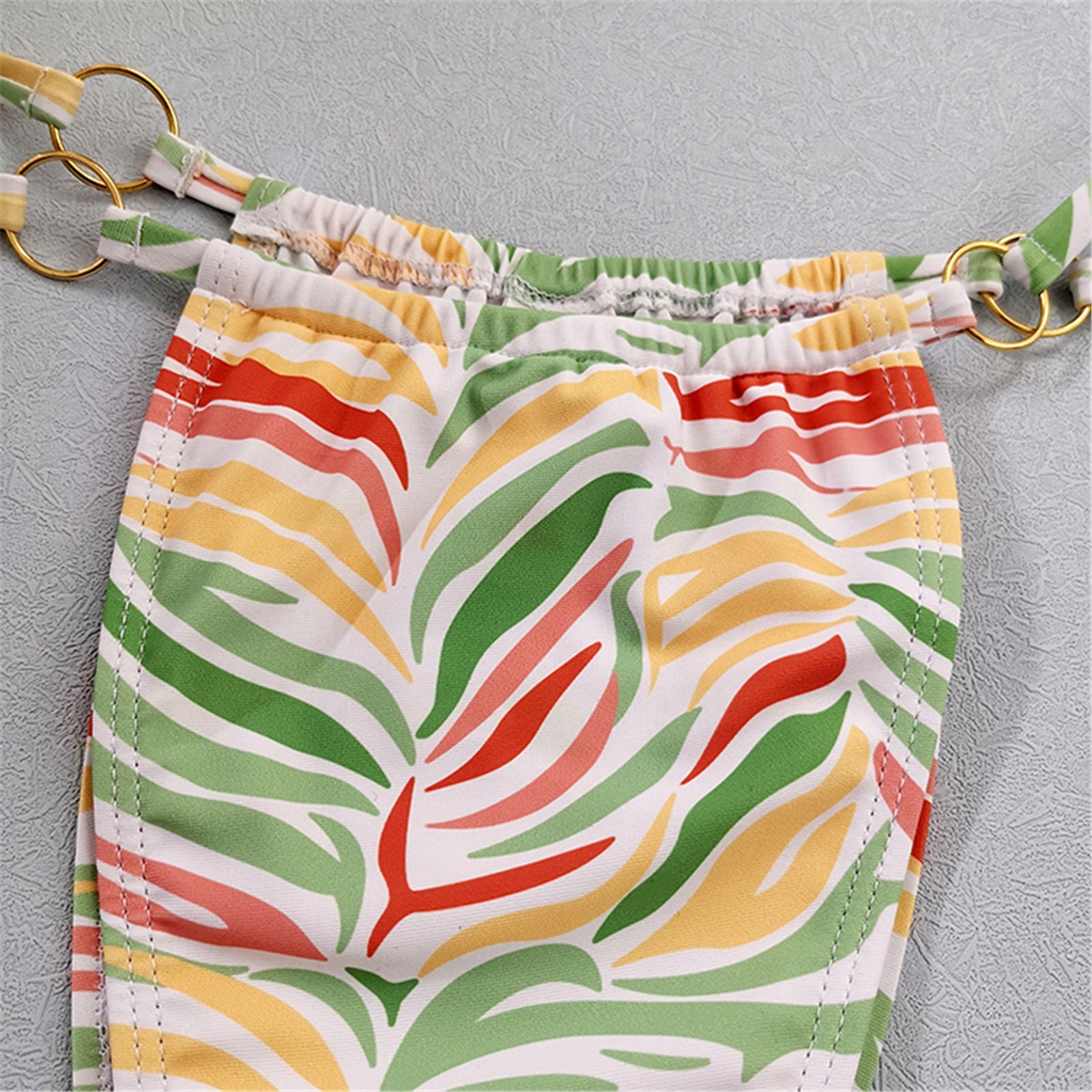 Женский модный купальник с принтом в виде листьев, сексуальный пляжный купальник-бикини с подвеской на шее