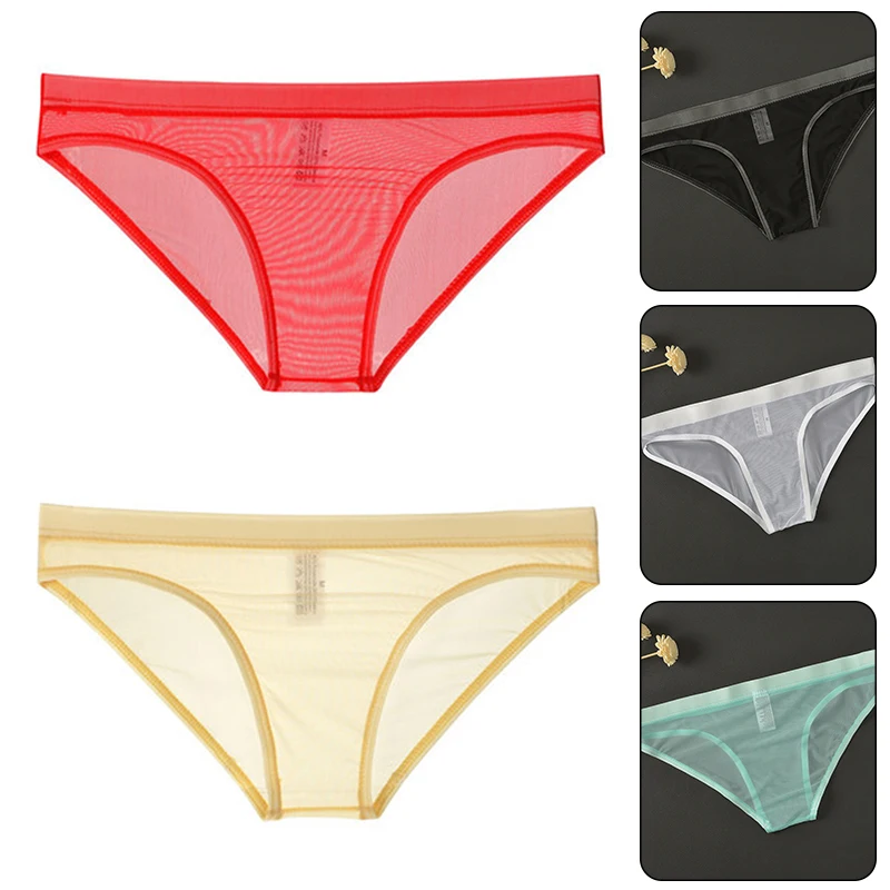 Мужское Прозрачное нижнее белье, тонкие сетчатые облегающие трусы без сумки, сексуальные дышащие модные трусы для молодых мужчин, трусы с низкой талией