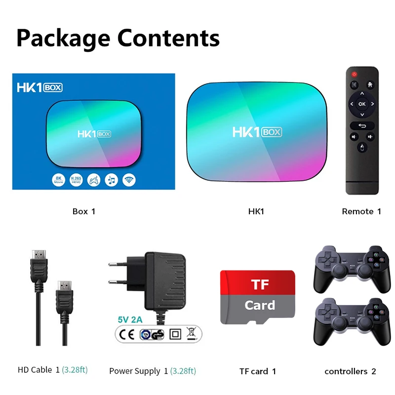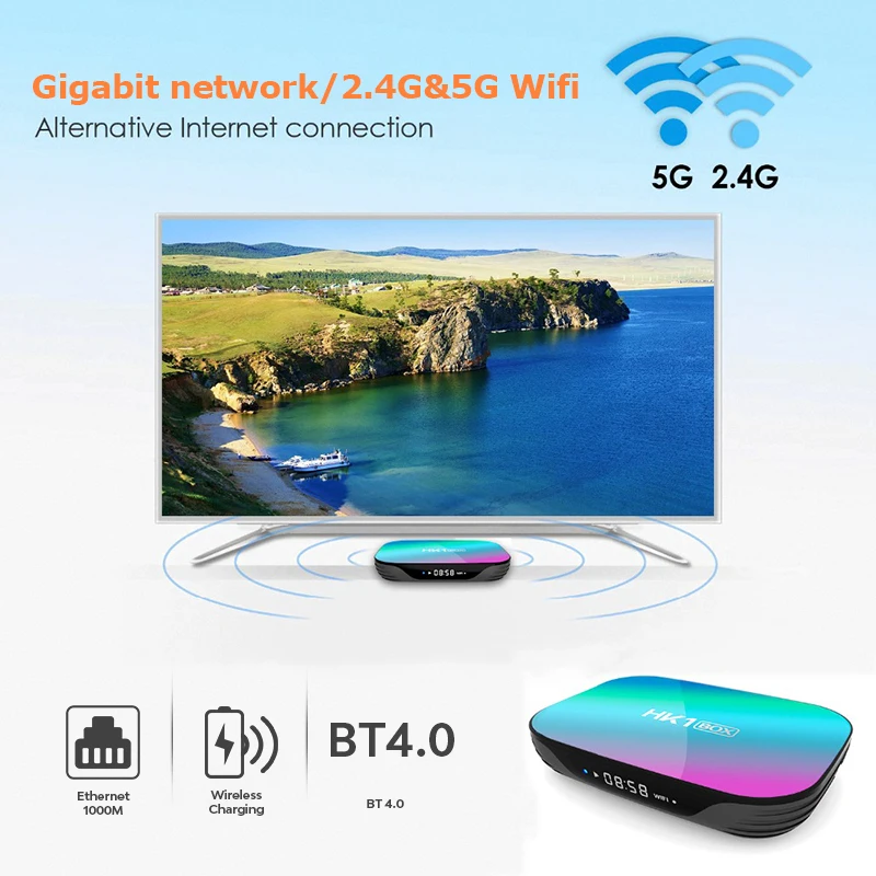 HK1 ТВ коробка с процессором Amlogic S905X3 64-разрядный четырехъядерный процессор ARM®Кортекс™A55, 4G RAM + 32G ROM. 4 Гб оперативной памяти для обеспечения скорости и стабильности операционной системы. 32 Гб ROM обеспечивает достаточно места для установки приложений и игр. Вы можете скачать много необходимых приложений через этот android tv box