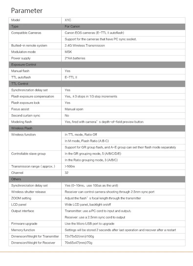 Compatible with: Canon EOS cameras(E-TTL II autoflash); Support all cameras that have PC sync socket