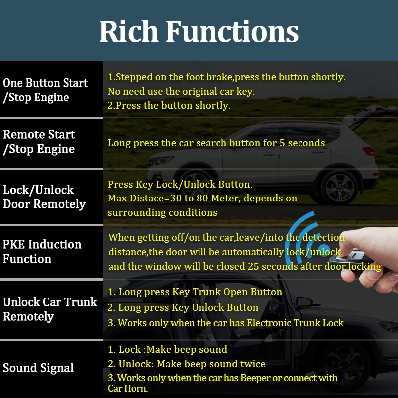 2.PKE бесключевая запись, функция автоматического переключателя датчика блокировки, рядом с автомобилем 2 метра, автоматический датчик разблокировки.