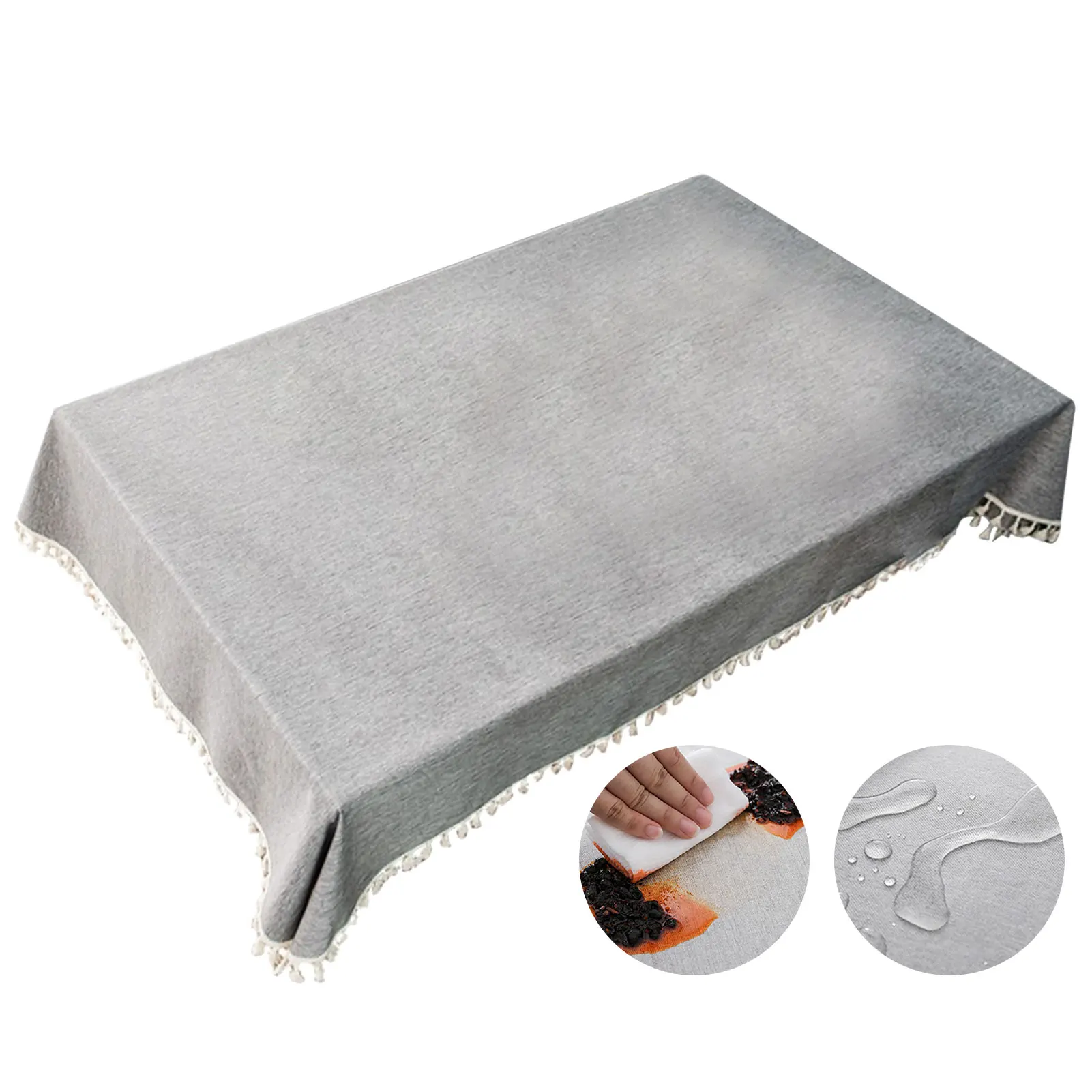 Элегантная хлопковая льняная скатерть с бахромой моющаяся, устойчивая к морщинам, водонепроницаемая и противоскользящая. Он идеален