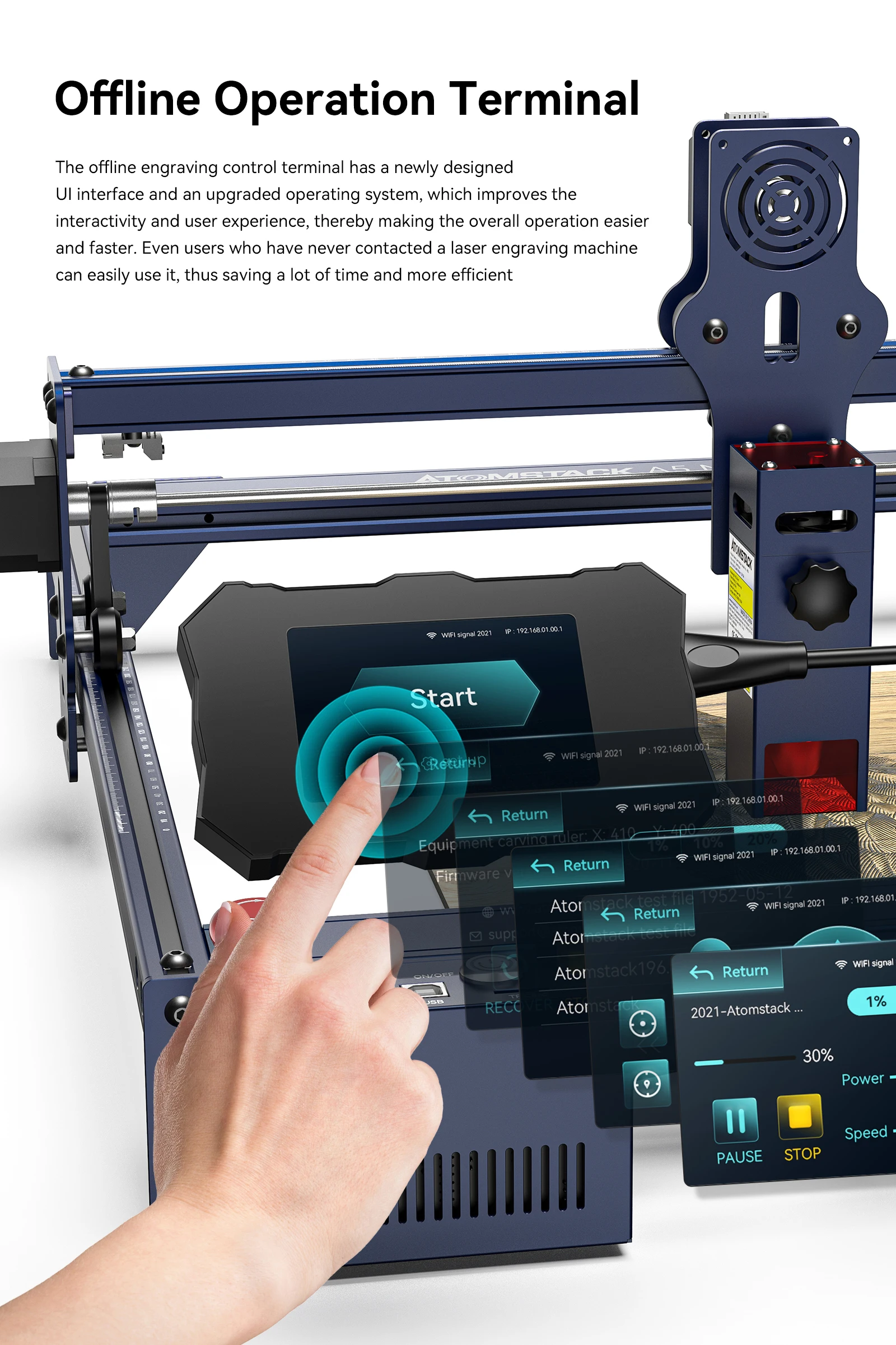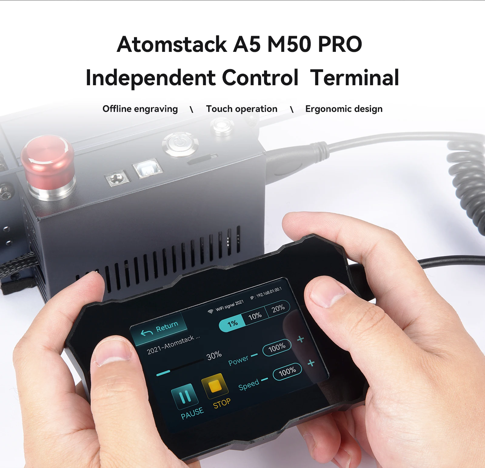 A5 M50 PRO настраивает терминальную панель управления 32 бит, поддерживает автономную гравировку, вы можете выполнять гравировальную работу в любое время и в любом месте, не ограничиваясь компьютером.