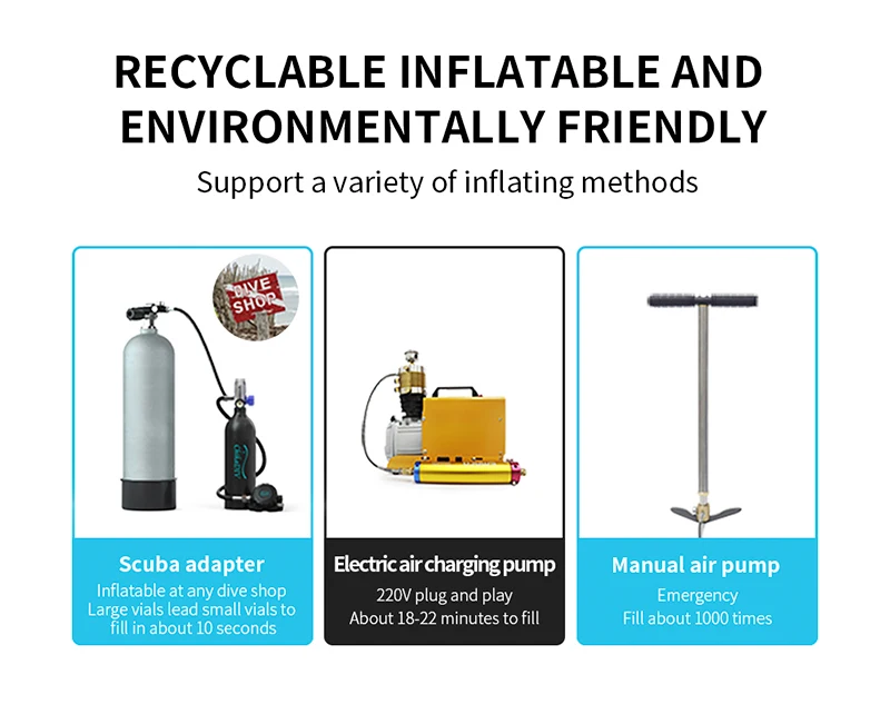 Погружной резервуар 8 мм односторонний надувающийся клапан может быть подключен к разъему пополнения для наполнения. Вы обычно можете использовать большую бутылку для руководства флаконом. Кроме того, вы можете использовать ручной насос высокого давления или электронный насос. Нам немного сложно использовать ручной насос, поэтому он используется в качестве резервного метода надувания. Кроме того, если есть магазин для дайвинга, вы можете обратиться за помощью.