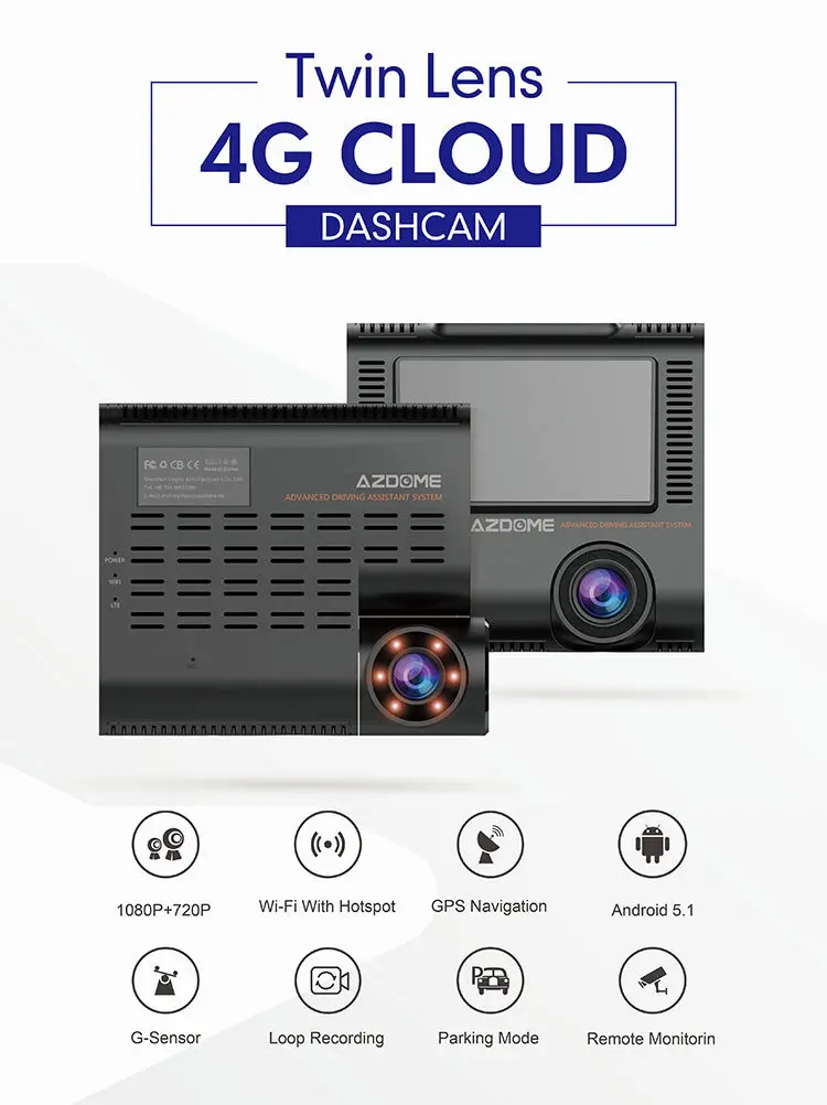 AZDOME 4G пульт дистанционного управления видеорегистратор 4G LTE GPS автомобильный двойной видеорегистратор 2 камеры s DVR камера