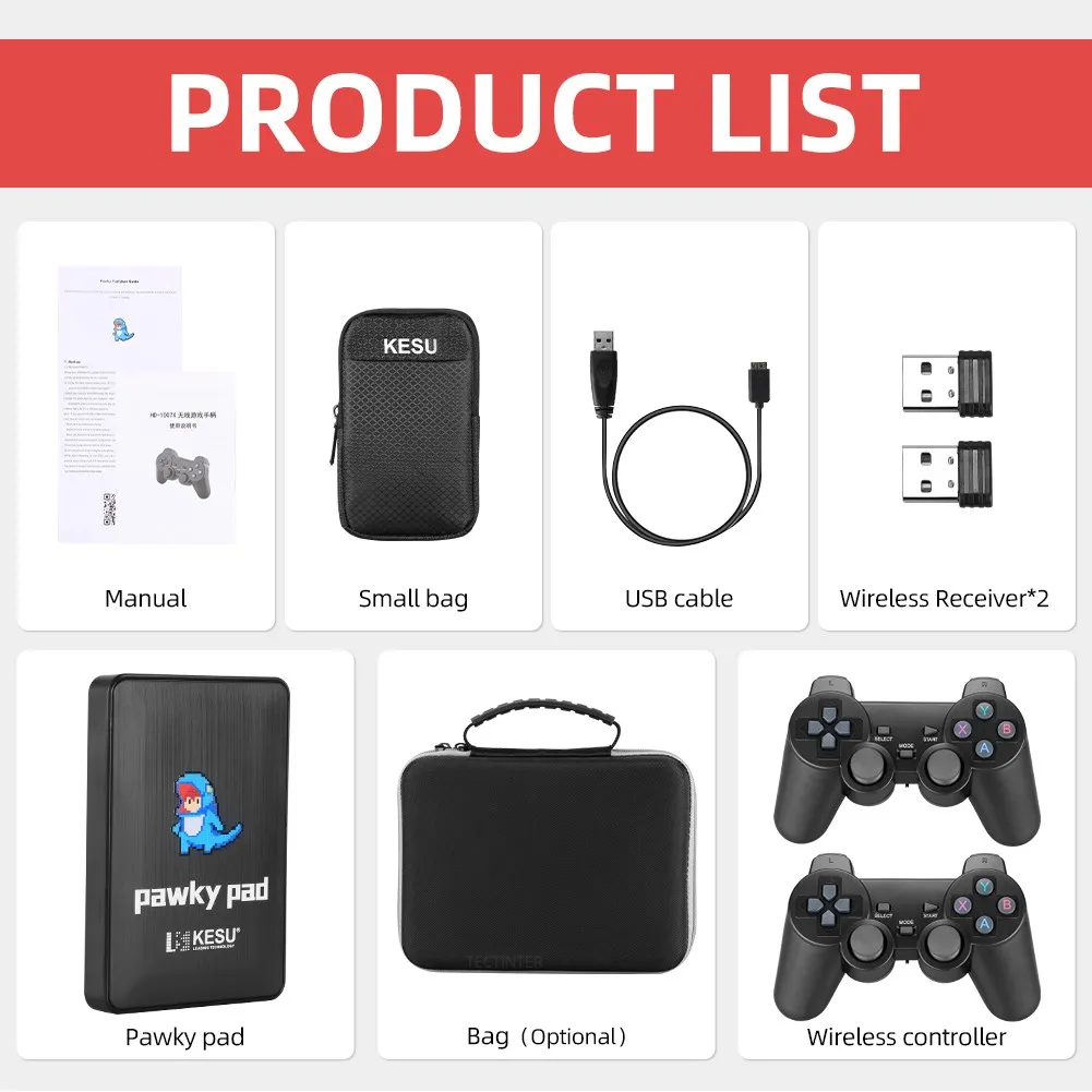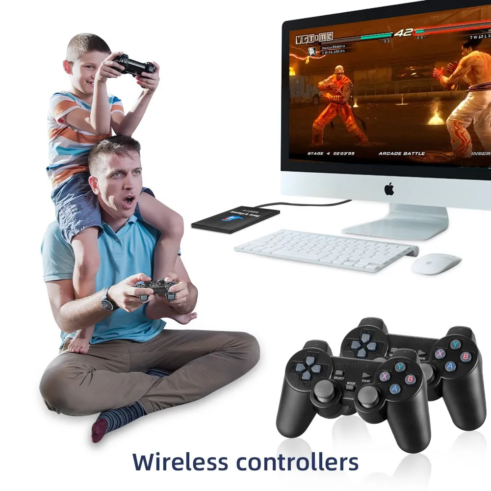 Поставляется с двумя беспроводными контроллерами 2,4G, он также поддерживает проводные и Bluetooth контроллеры для подключения.