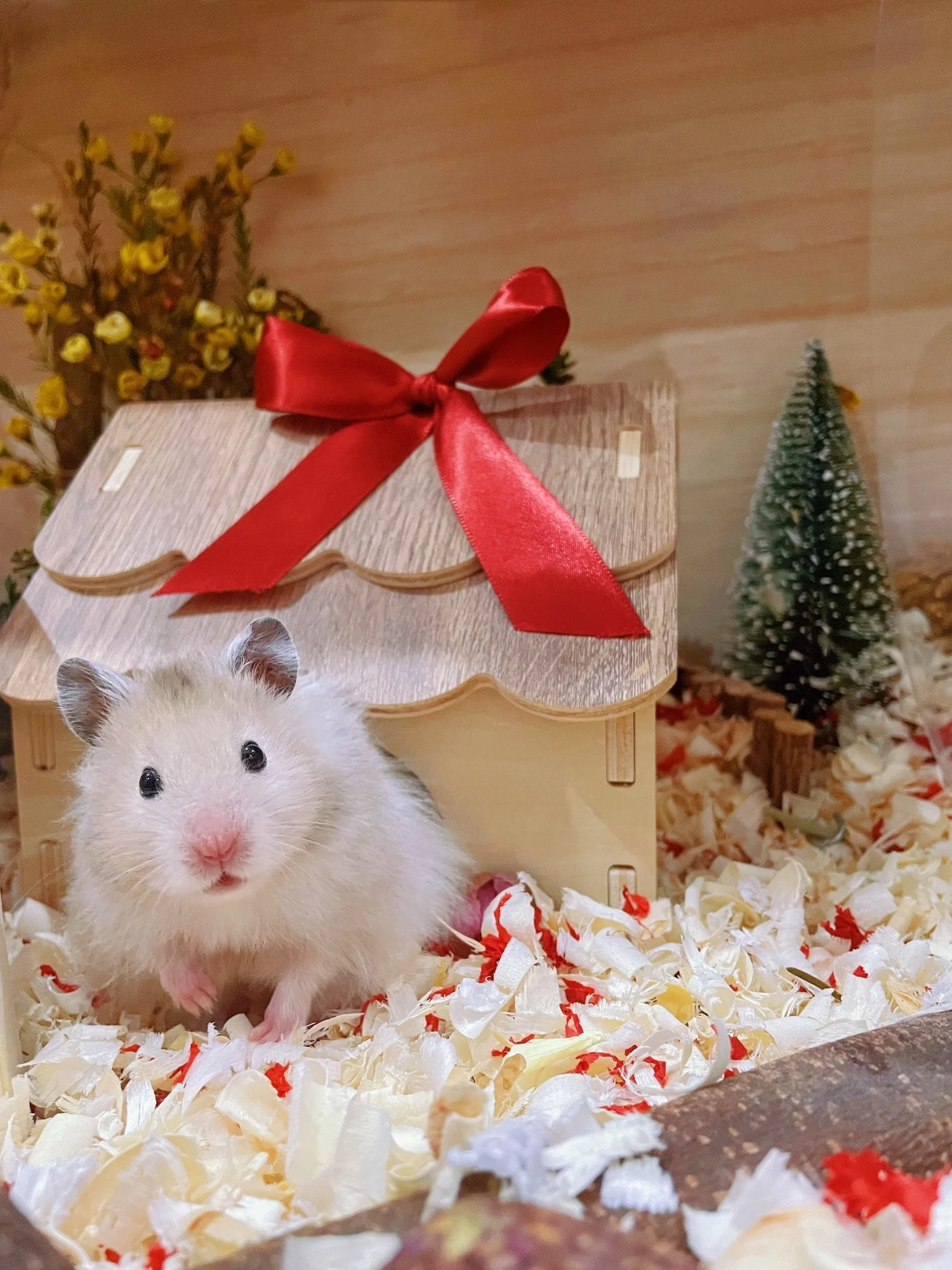 2. Маленький домик для домашних мышей, log flavor, удобное и дышащее пространство подходит для домашних мышей, чтобы спрятать, и это хорошо подходит для жизни и ландшафтного дизайна, с естественной и живой атмосферой; открытое избегание, во время волнения, дает мышам питомца чувство безопасности.