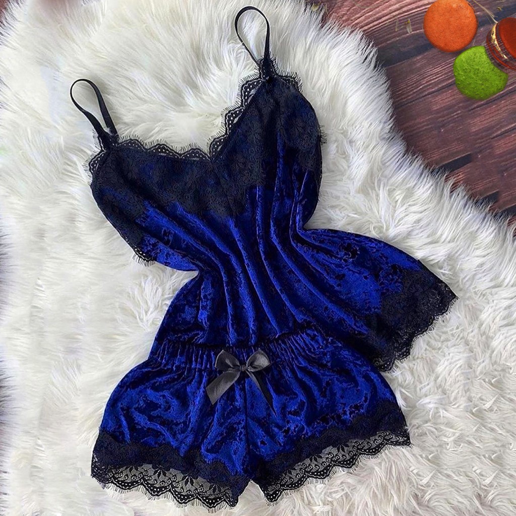 Новинка, женское сексуальное нижнее белье, майка с бантом, шорты с v-образным вырезом, бархатные пижамы, одежда для сна