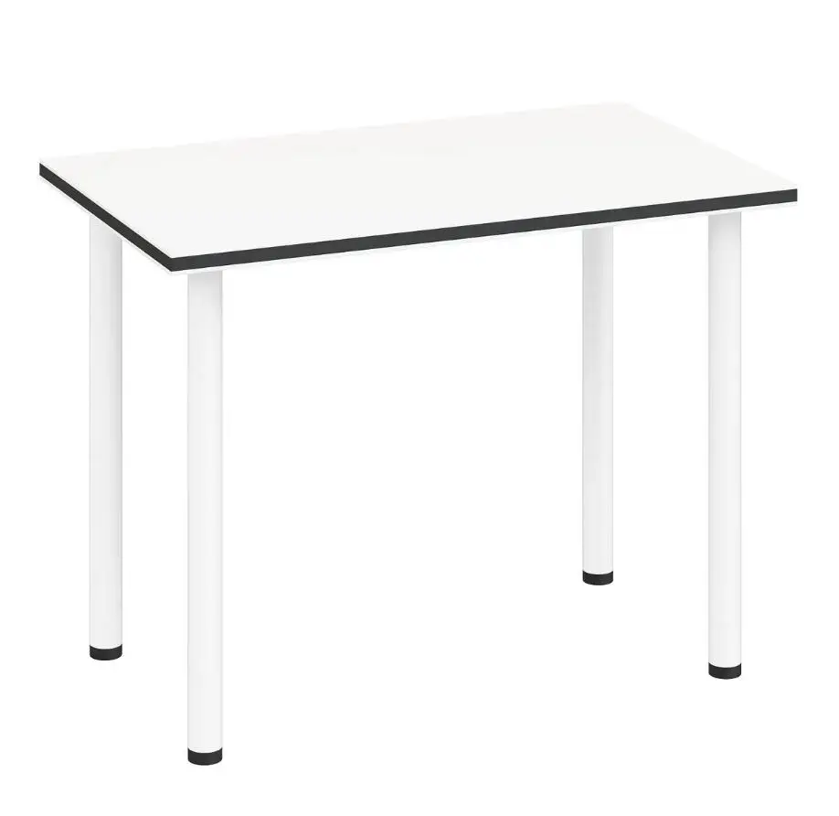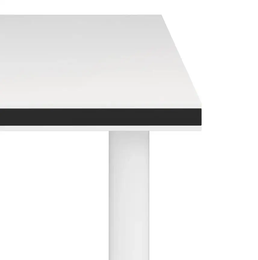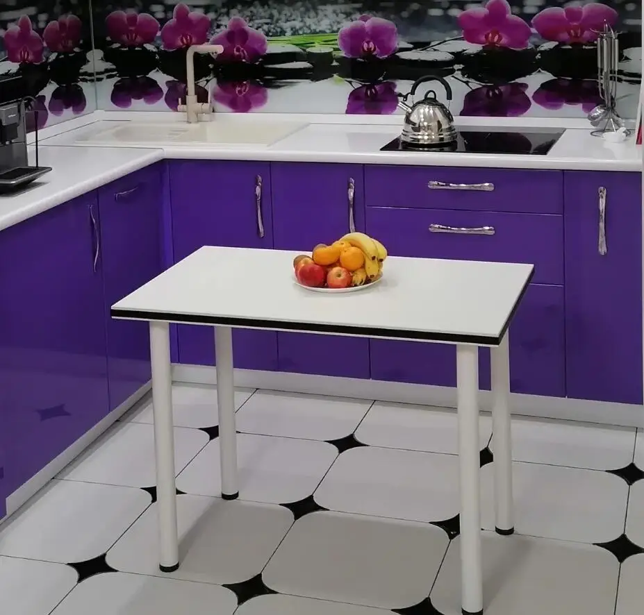 Стол прекрасно впишется в интерьер современной квартиры. Идеально подходит для владельцев маленькой кухни. И это дополнит атмосферу домашнего тепла и комфорта, которые вы создали. Столешница толщиной 32 мм изготовлена из ламинированной ДСП. И подкладка со всех сторон с кромкой из ПВХ толщиной 2 мм белого цвета. А также нанесен другой слой кромки ПВХ толщиной 2 мм черного цвета. Ножки стола металлические, белые.