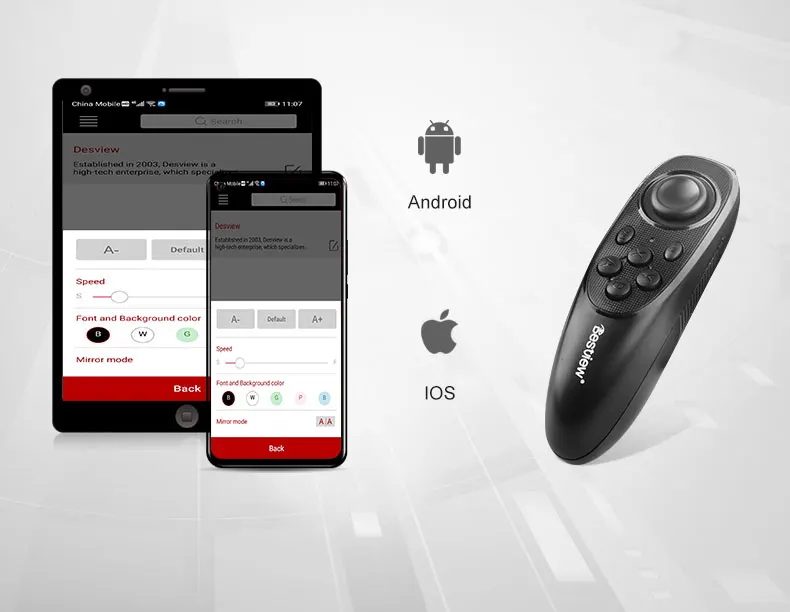 Приложение Teleprompter для смартфона/планшета может управлять страницей, воспроизводить и останавливать, ускорять и замедлять работу, регулировать размер и цвет фона текста.