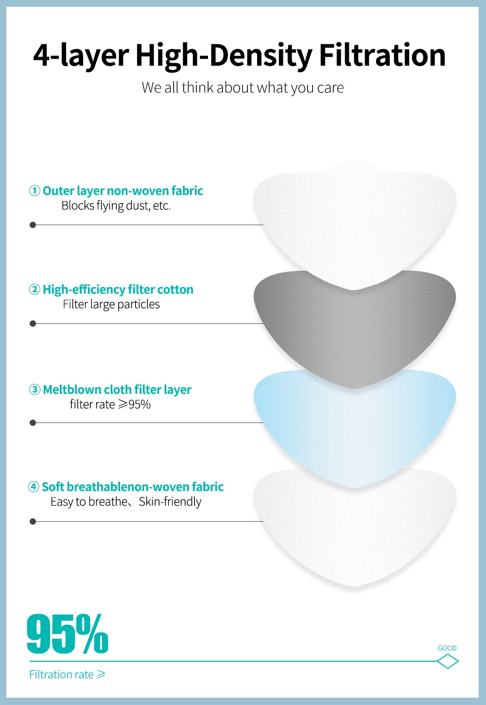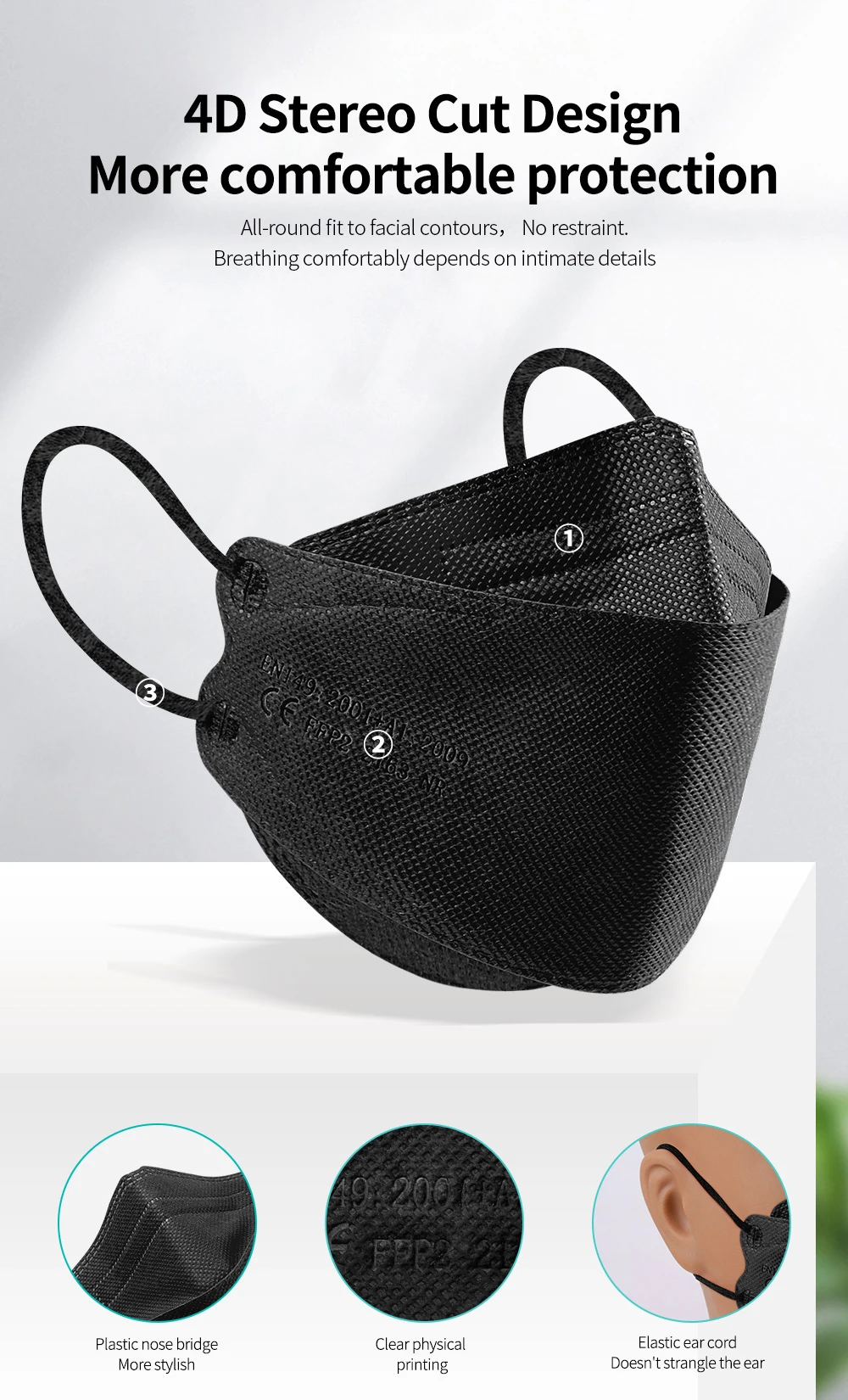 ④ Высококачественный защитный эффект. Его защитный эффект такой же, как маска KN95 и Европейская маска FFP2.