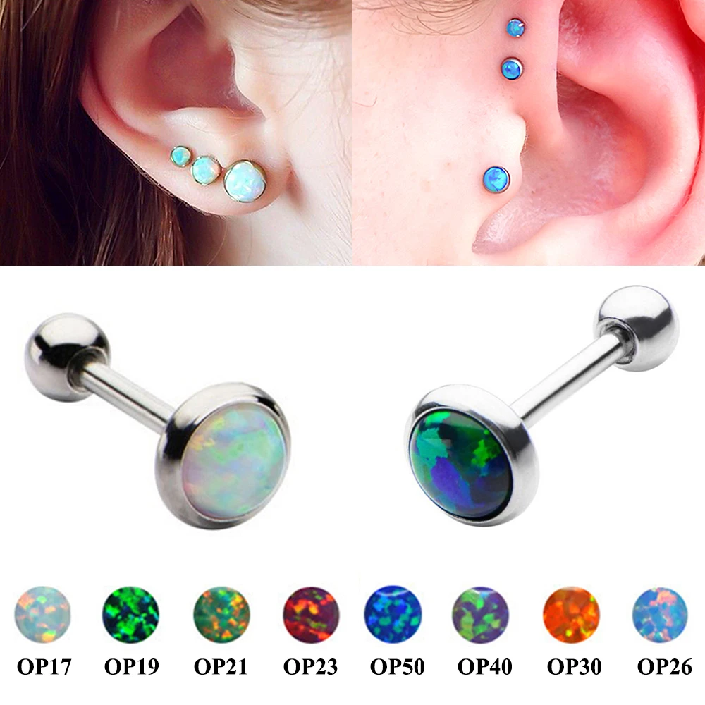2 шт 16G Опал серьги гвоздик для пирсинга в хряще спираль Козелка раковины пирсинг уха, ювелирное изделие для женщин, модное кольцо из нержавеющей стали, серьги-гантели