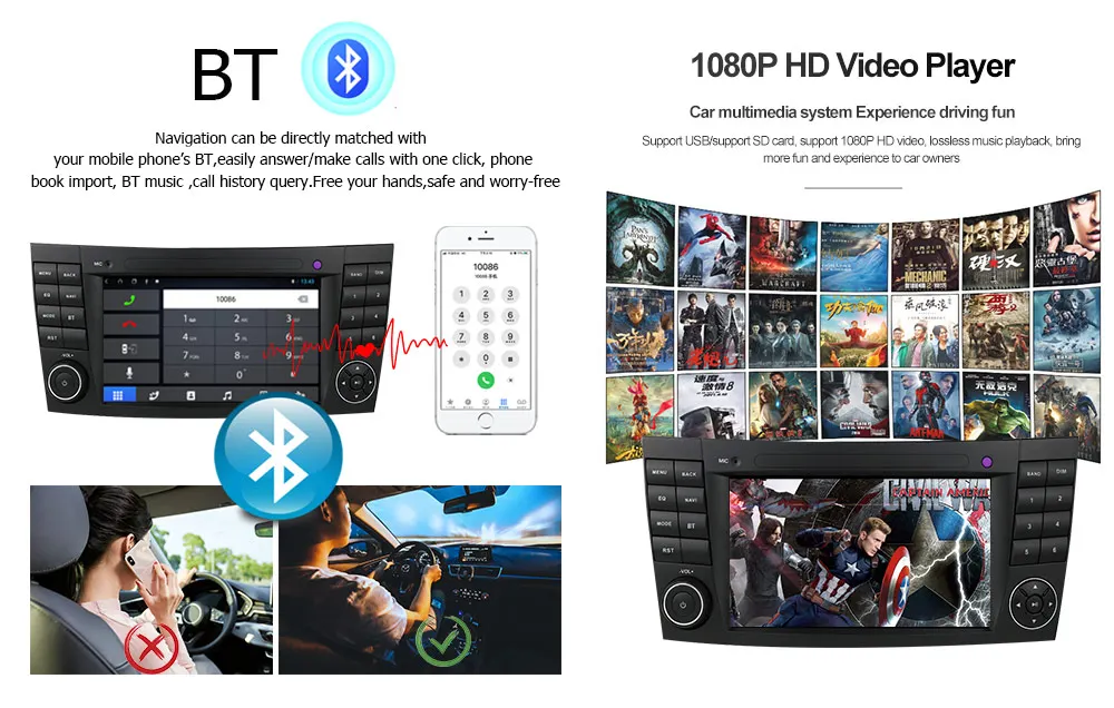 6. Поддержка: радиостанция, Bluetooth Вызов, Bluetooth музыка, управление рулевым колесом, встроенный WiFi, MP3, видео музыка (MPG, AVI), навигация, видеовыход, зеркальная связь, USB 4G LTE WIFI ключ и другие функции;