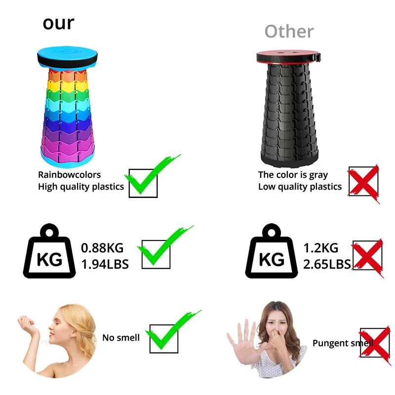 Выдвижной табурет идеально подходит для использования в помещении и на открытом воздухе. Домашние мероприятия, такие как гостиная, спальня, ванная комната, горы, кухня, пляж, бассейн, офис; Мероприятия на свежем воздухе, такие как кемпинг, рыбалка, охота, туризм, барбекю, пикник, ожидание, садоводство и т. Д.