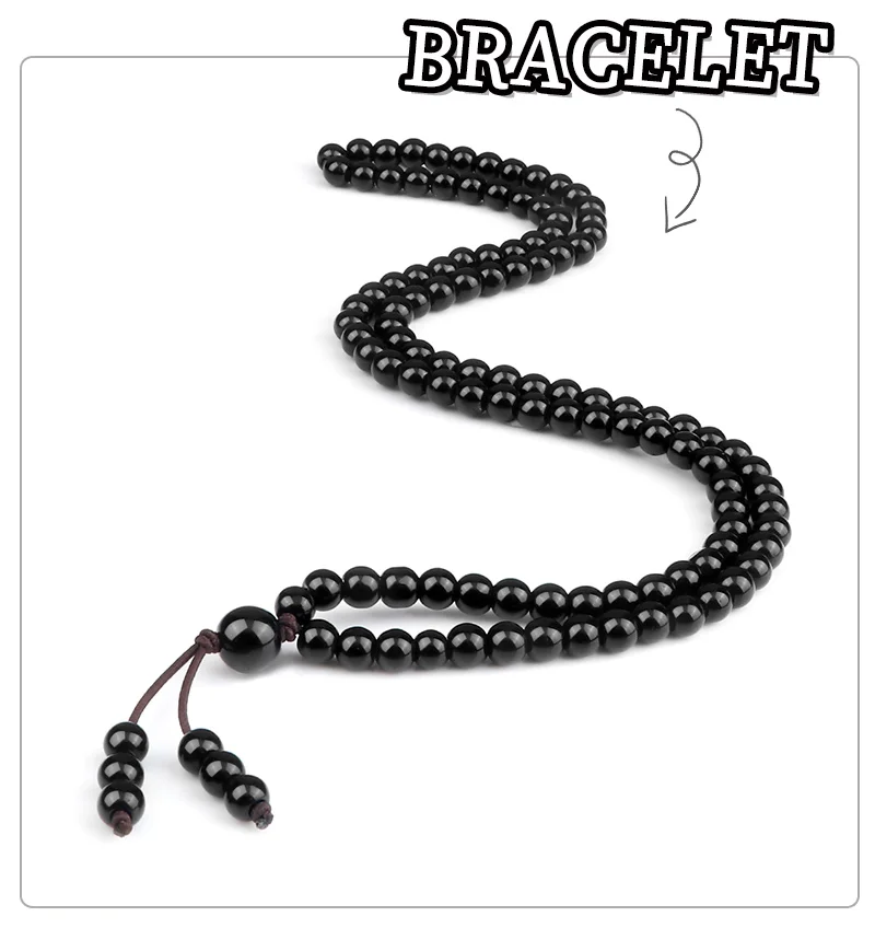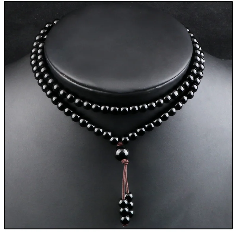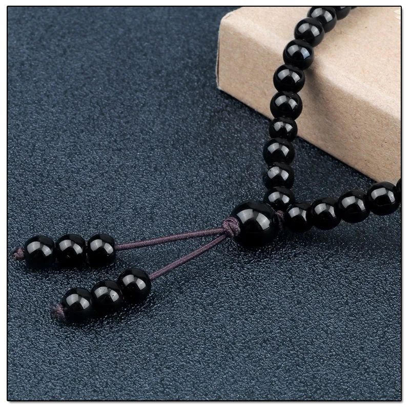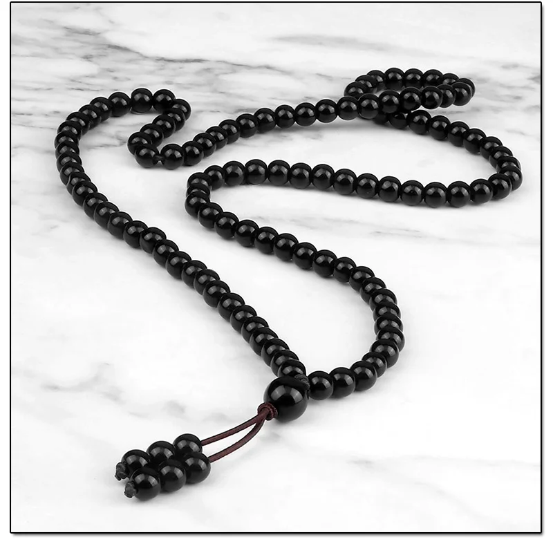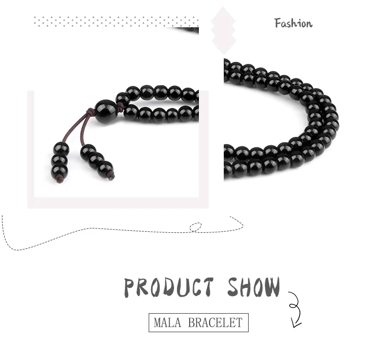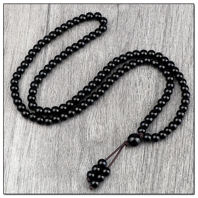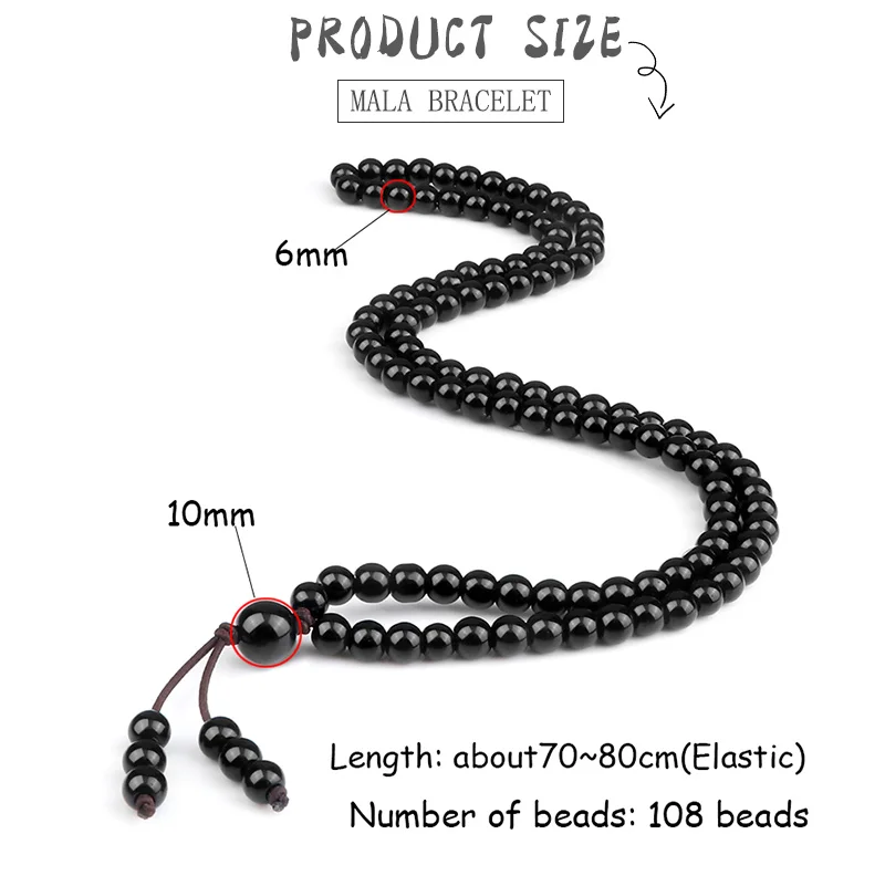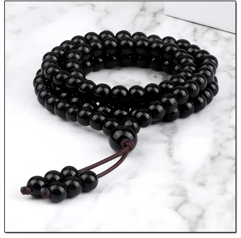 Молитва Мала 108 бусины Розария браслет 6 мм Блестящий черный натуральный камень буддийский Будда женские и мужские эластичные браслеты и браслеты ювелирные изделия