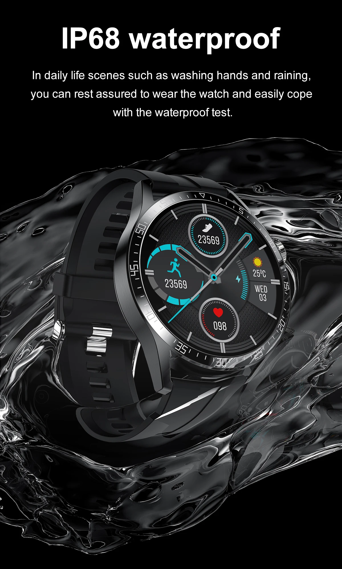 Водонепроницаемый: IP68 водонепроницаемый(Пожалуйста, не используйте его во время душа и плавания!)