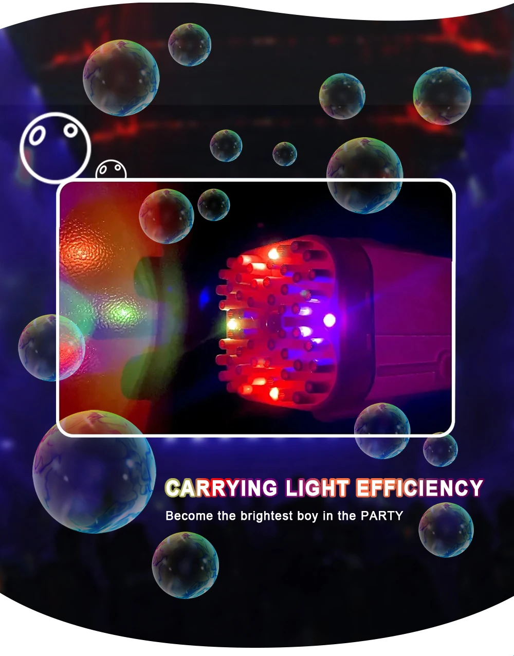 -Инновационный дизайн пистолета:Пусковая установка bubble rocket имеет 64 отверстия для пузырьков, каждую минуту выдувая тысячи красочных пузырьков. С красочным освещением. Mo re funny в ночное время