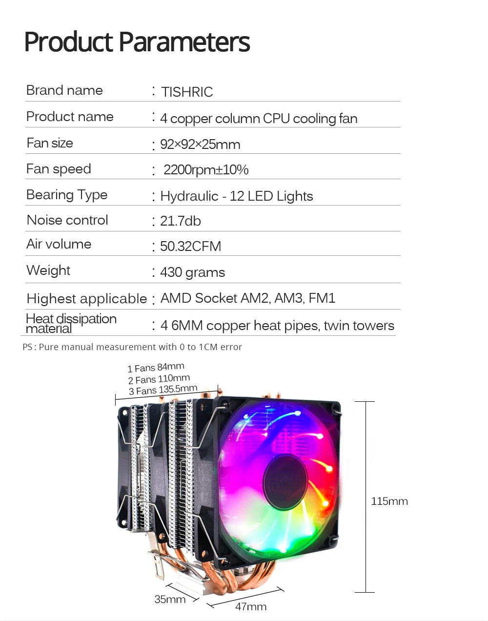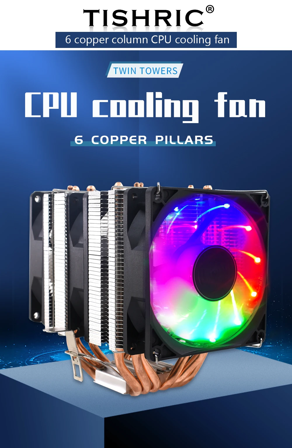 TISHRIC Процессор Вентилятор охлаждения RGB тихий вентилятор радиатора 4 Pin PWM 2/4/6 Медь Колонка Intel LGA 2011 1200 1150 1151 1155 X79X99 AM3 AM4
