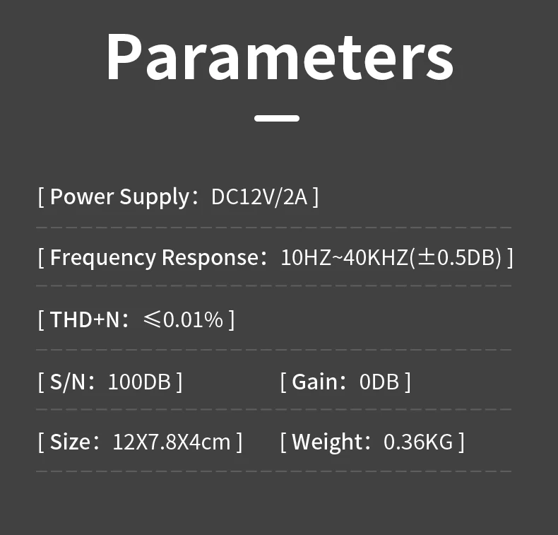 S/N:100 дБ, коэффициент усиления: 0 дБ