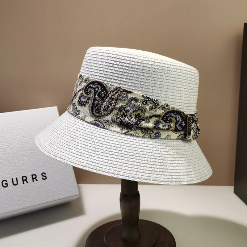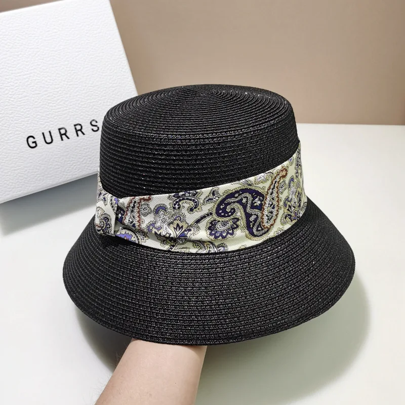2022 Summer Hats For Women Korean Fashion Bucket Hat Wild Travel Sun Protection Straw Hat Japan Simple Ribbon Sun Hat Black Cap