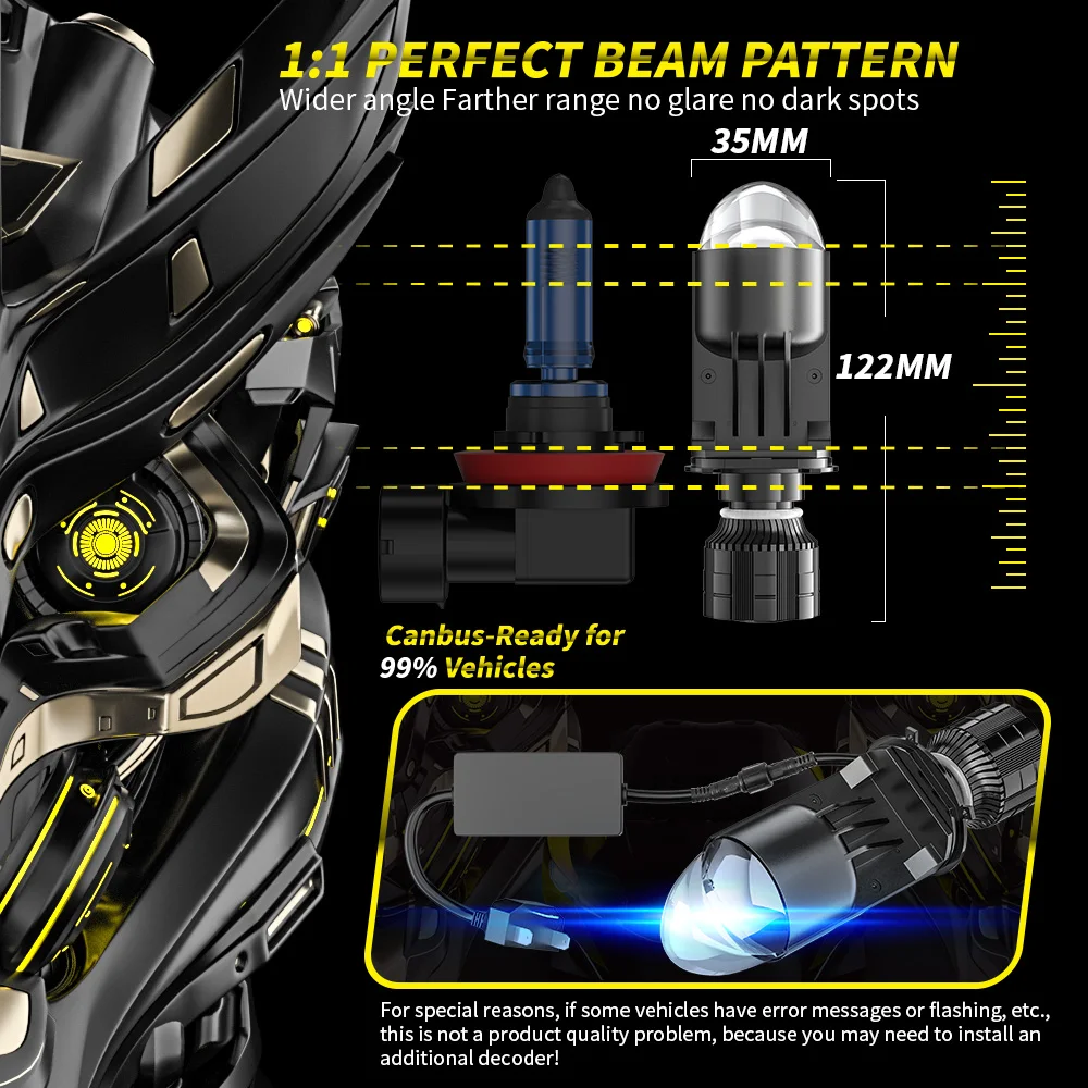 ● [Стабильный светильник источник]: используется только высокое качество CSP светодиодный Чипсы, 300% ярче, чем галогенные лампы. Стабильная производительность гарантирует долгий срок службы лампы до 100000 часов.