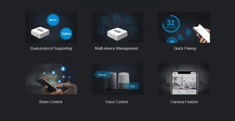 Совместимость с широким спектром интеллектуальных вилок SONOFF ZigBee, выключателей, беспроводных переключателей и датчиков для более умных сцен.