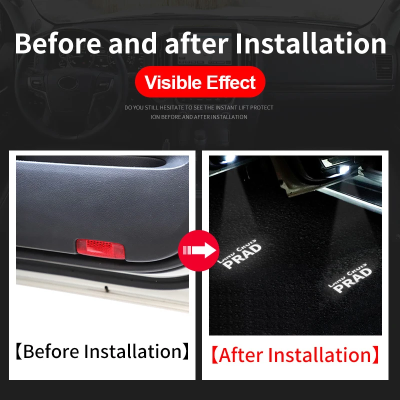 2010-2013 Prado Door Light Is with Strip Line Plug, Just Replace It Directly. After the 2014 Model, Prado Reduced the Configuration and Canceled the Door Side Light. the Door Side Light Is Just a Lamp Shell, and There Is No Line inside. Our New Upgraded Door Ambience Light Is Equipped with Wiring Harness, No Need to Wire Yourself, Wiring Harness and Door Ambience Light Interface Wiring Wiring harness docking Is OK.