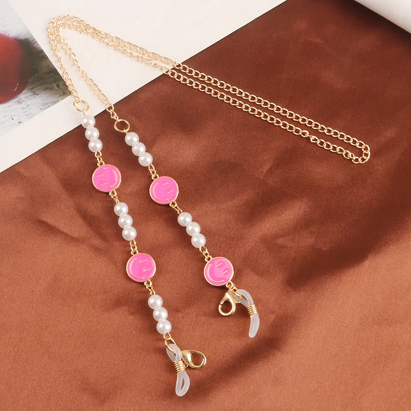Красочные Капельное масло смайлик очки цепь для детей девочек золото металл Жемчуг Бусы маска солнцезащитные очки цепи противоскользящая веревка