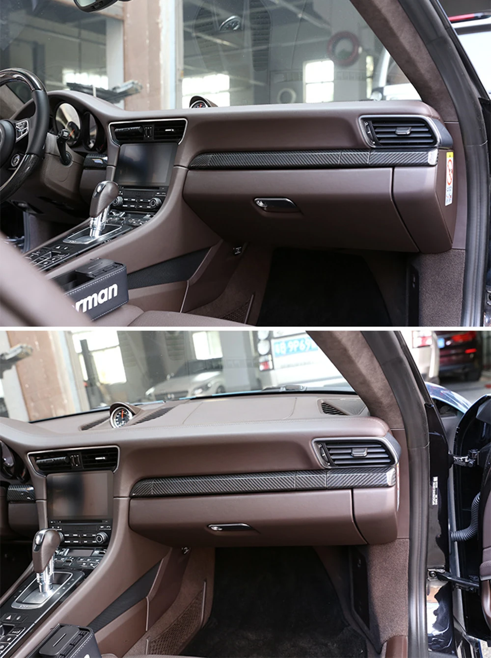 LHD Real Dry Carbon Fiber Console Dashboard Passenger Decorative Trim Panel Cover For Porsche 911 718 Cayman Boxster 2016-2019